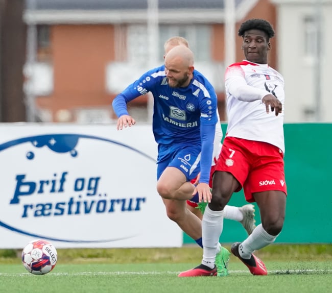 Ragnar Óli í smá brasi og Abdul vinnur boltann af honum. Framherjinn keyrir inn á teiginn og á skot en það fer framhjá - í hliðarnetið utanvert.