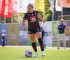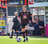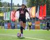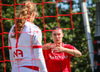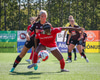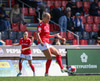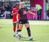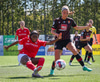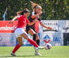 Shaina tekur spyrnuna á fjærsvæðið þar sem Erna Guðrún er mætt en hún nær ekki að halda boltanum í leik.
