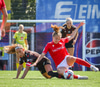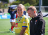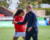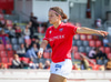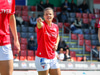Shaina kemur með góðan bolta inn á teiginn úr horninu sem fer beint á enniið á Rachel en skallinn hennar fór rétt framhjá.