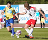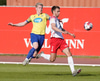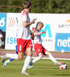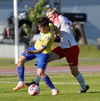 Árni Elvar tekur skotið á lofti eftir fyrirgjöf frá Marc Sörensen en skotið framhjá.