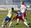 Gestirnir ekki lengi að þessu. Kwame fær boltann aleinn inn á teignum og neglir boltanum í netið.