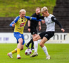 FH-ingar sækja hratt og Björn Daníel gerir vel í að hrista af sér sinn varnarmann. Hann leggur svo boltan til hliðar á Kjartan sem reynir fyrirgjöfina. Steinþór kemur hinsvegar vel út úr markinu og handsamar boltan.