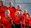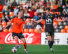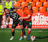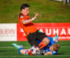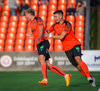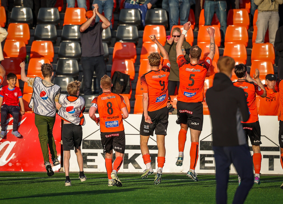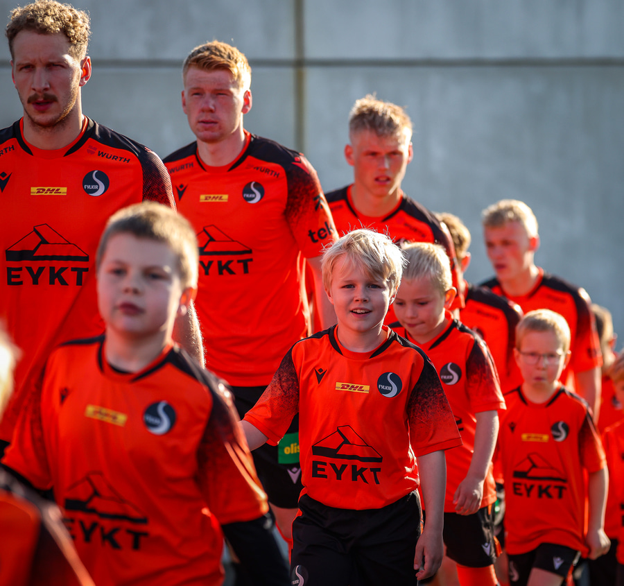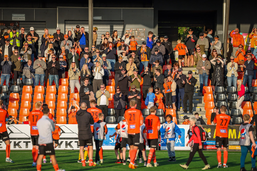 Fylkir spilar í appelsínugum treyjum, svörtum stuttbuxum og appelsínugulum sokkum.