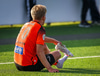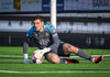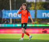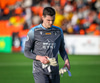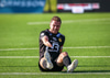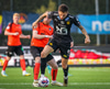 Hinrik fær góða sendingu í gegn frá Arnóri Smára og nær skotinu á markið sem Ólafur er hins vegar í engum vandræðum með og handsamar boltann.