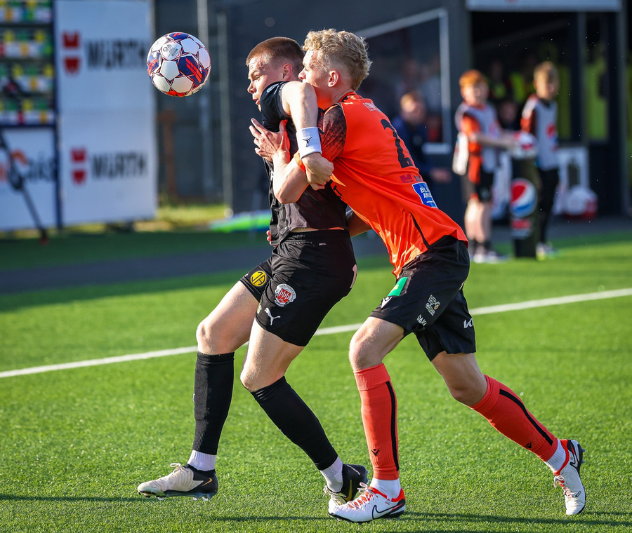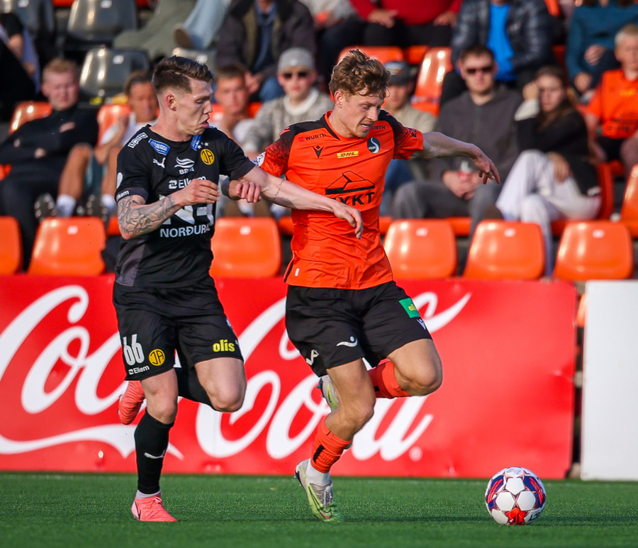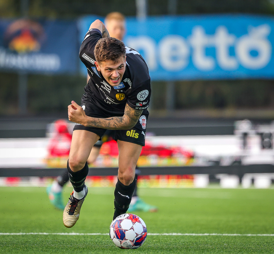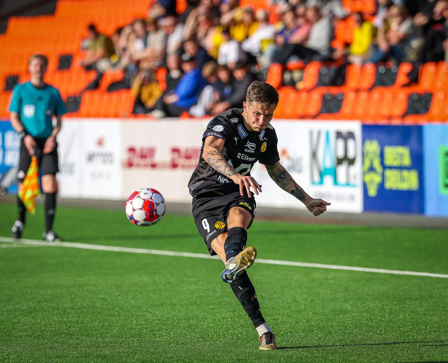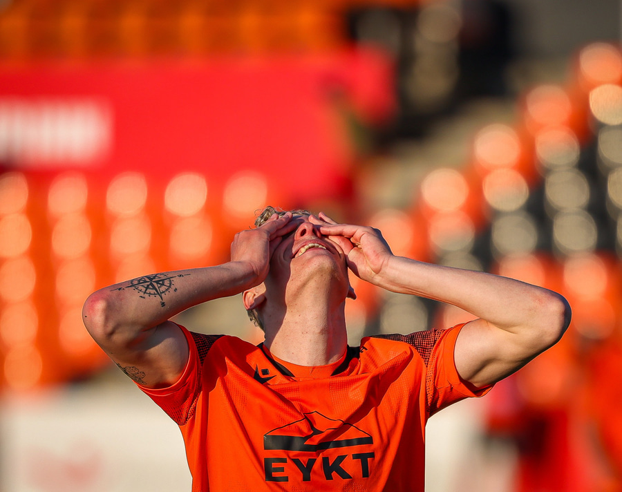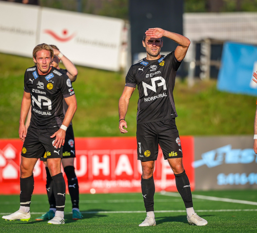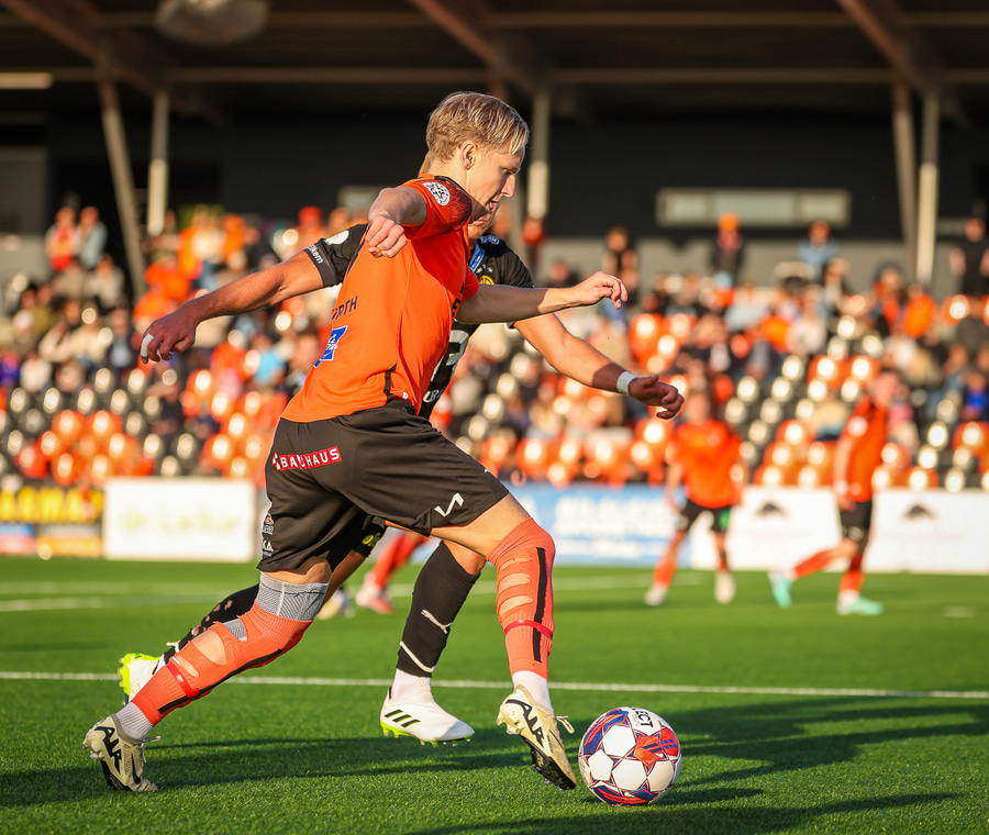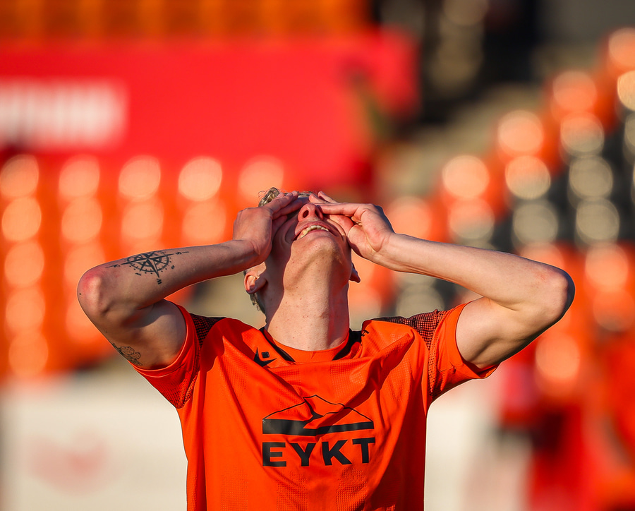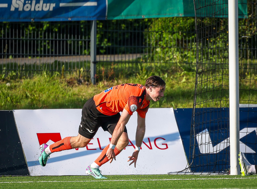 Johannes Vall brunar upp vinstri vænginn og kemur með boltann fyrir á Viktor Jóns sem skallar boltann rétt framhjá. Hann var gjörsamlega einn og óvaldaður en gerði vel að ná skallanum.