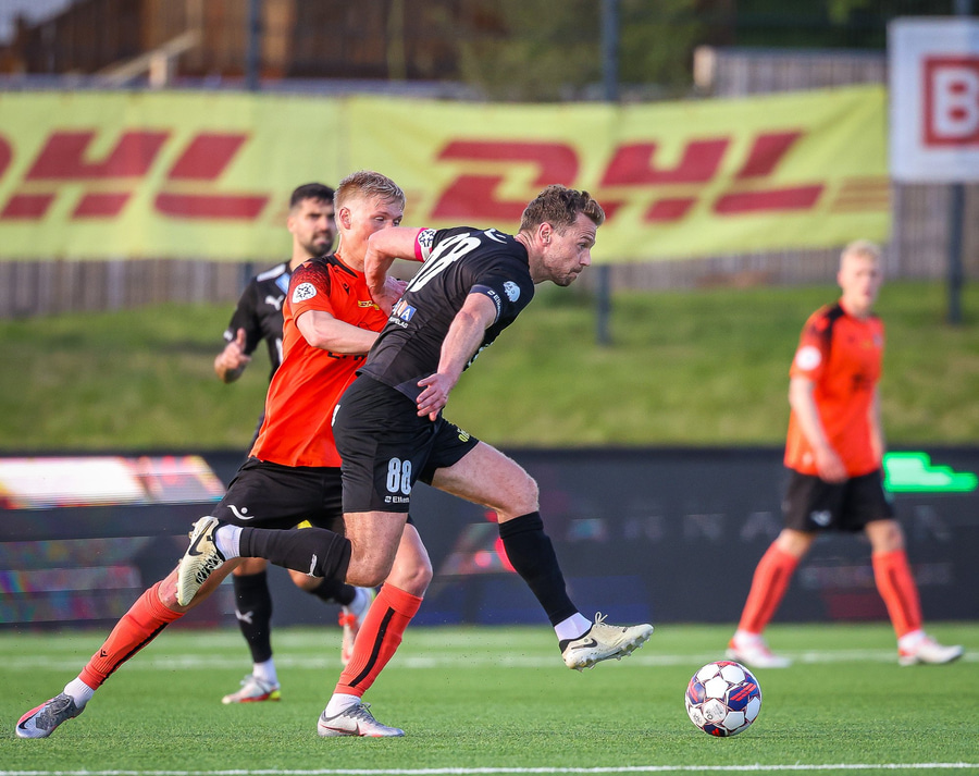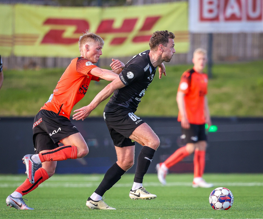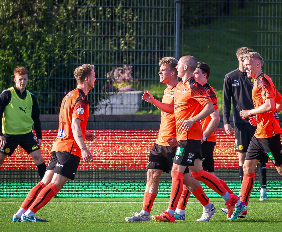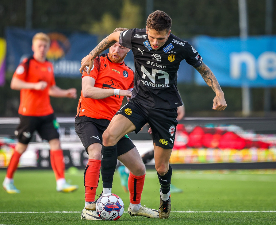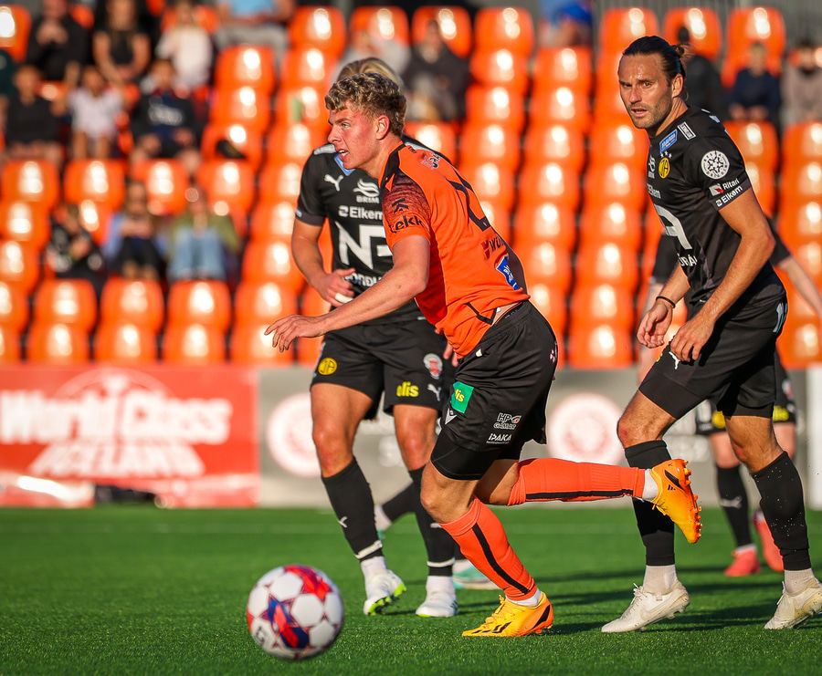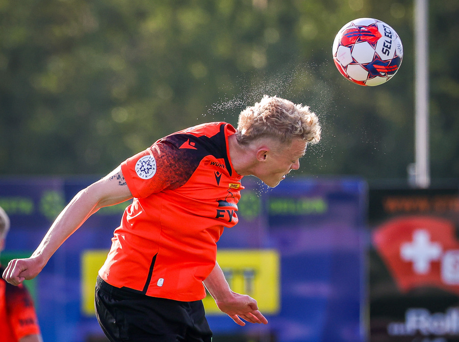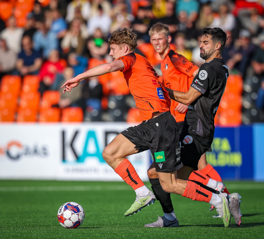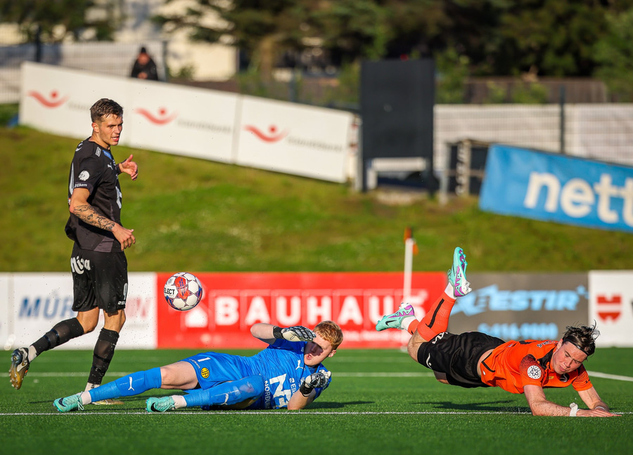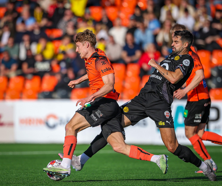 Johannes Vall brunar upp vinstri vænginn og kemur með boltann fyrir á Viktor Jóns sem skallar boltann rétt framhjá. Hann var gjörsamlega einn og óvaldaður en gerði vel að ná skallanum.