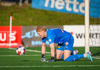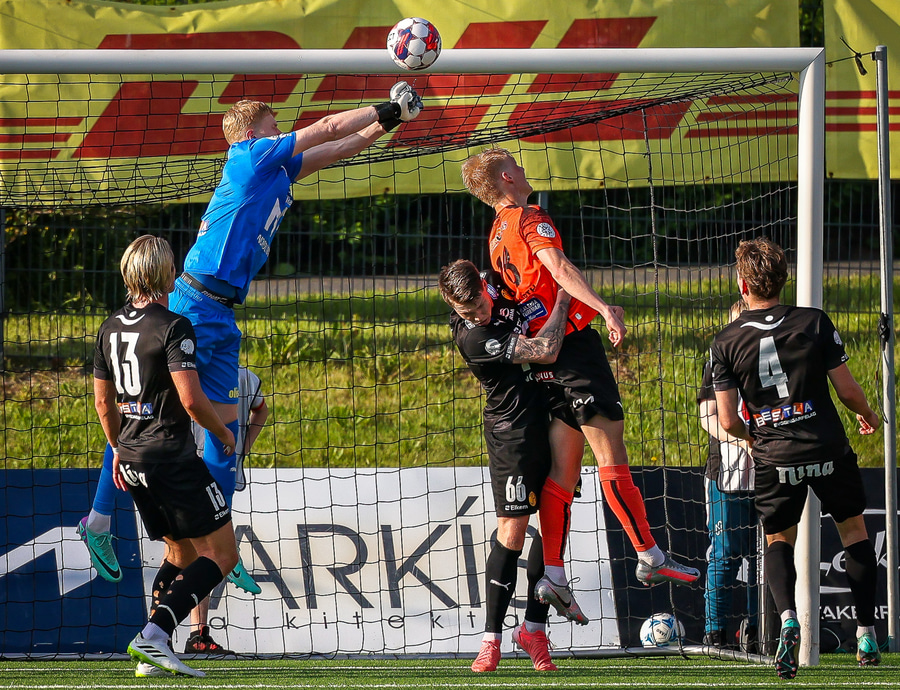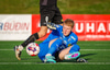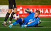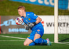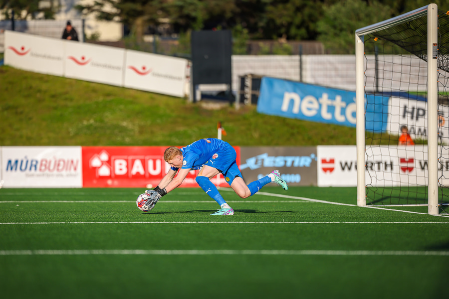 Johannes Vall tekur spyrnuna inn á teig sem Ólafur Kristófer gerir mjög vel í að handsama.
