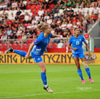 Þær pólsku að sleppa í gegn en flaggið fer á loft. Pólski lýsandinn hérna við hliðina á mér að missa vitið. Gjörsamlega brjálaður.