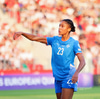 Karólína með aukaspyrnu frá vinstri kanti sem Ewa Pajor skallar frá. Selma Sól fær svo boltann fyrir utan teig og reynir skot, en það drífur varla að markinu.