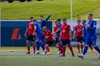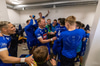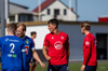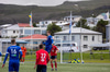 Heimamenn leika í bláum treyjum, bláum stuttbuxum og bláum sokkum.