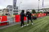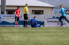 KFA fékk innkast og gátu sótt hratt en dómarinn stoppar leikinn svo KFA gæti skipt.