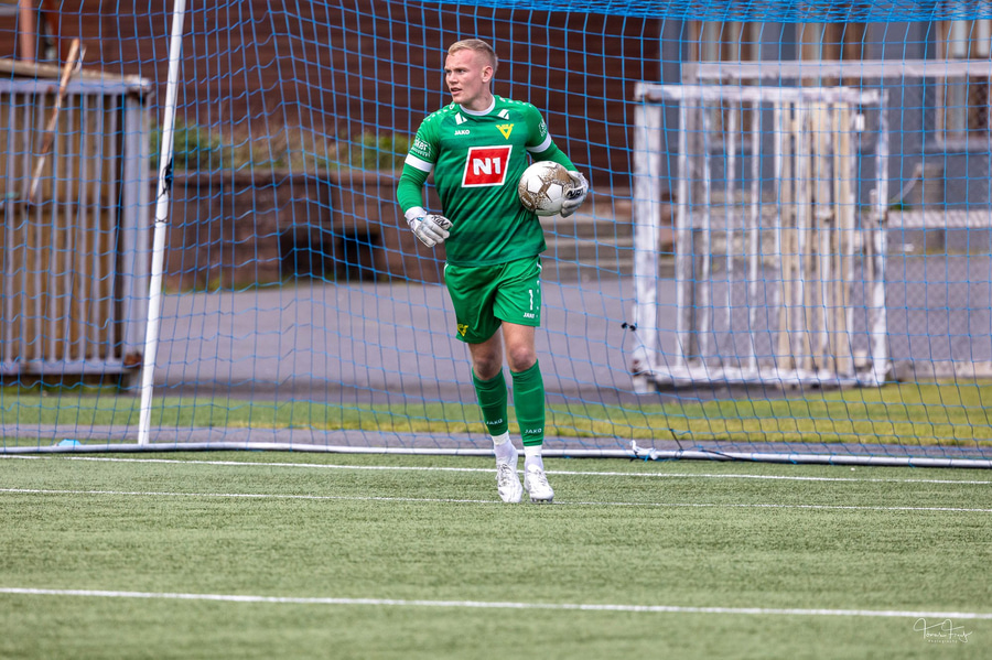 Björn Axel keyrir inn á teig KFA og nær góðu skoti á markið sem Doddi gerir vel í að verja og heldur boltanum.