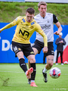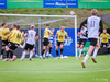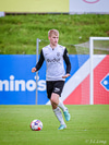Kjartan fær boltann út á vinstri og hann setur boltan inn í teiginn. Sendingin er góð beint á hausinn á Sigurð sem nær skallanum en yfir markið.