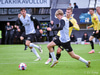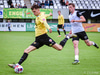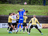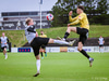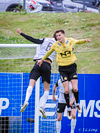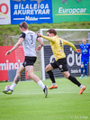 Steinar liggur í grasinu eftir að Logi Hrafn kom aftan í hann. Steinar hefur fengið takkana hjá loga aftan í hælinn, getur verið vont.
