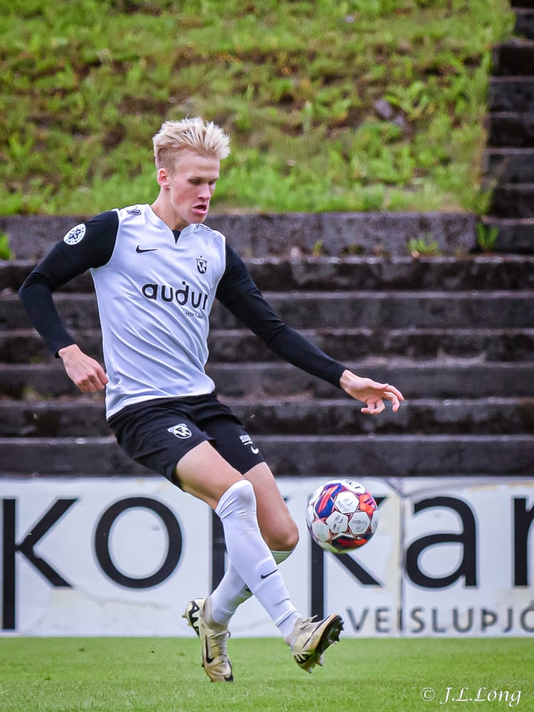 Logi tekur skotið fyrir utan teig sem fer beint í varnarmann, boltinn berst hinsvegar á Úlf inn í teig. Úlfur er fljótur að snúa og skjóta, en skotið er laust og Árni ekki í miklum vandræðum með það.