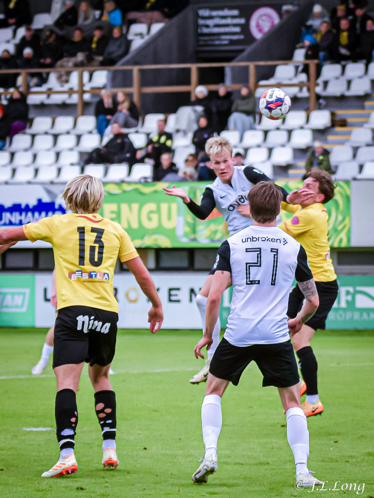 Vall tekur spyrnuna og setur boltan djúpt inn í teiginn. Þar stekkur Hlynur hæst og nær að skalla boltan aftur fyrir í hina áttina. Hinrik var þá búinn að gera sig dauðafrían og skallar boltann í opið markið.