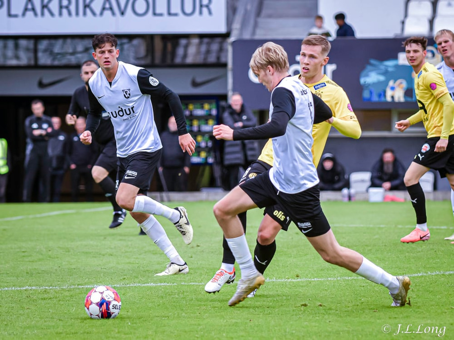 Logi Hrafn blokkerar hreinsunina hjá Viktori og leggur svo boltan fyrir markið. Böðvar framlengir svo boltan þar sem Gyrðir lúrir á fjær og leggur boltann í markið!