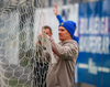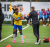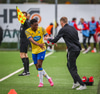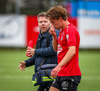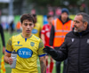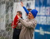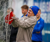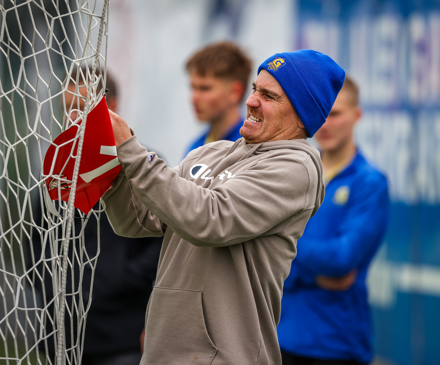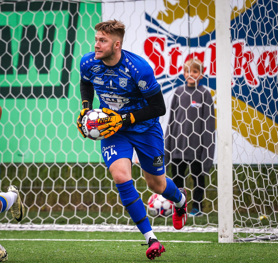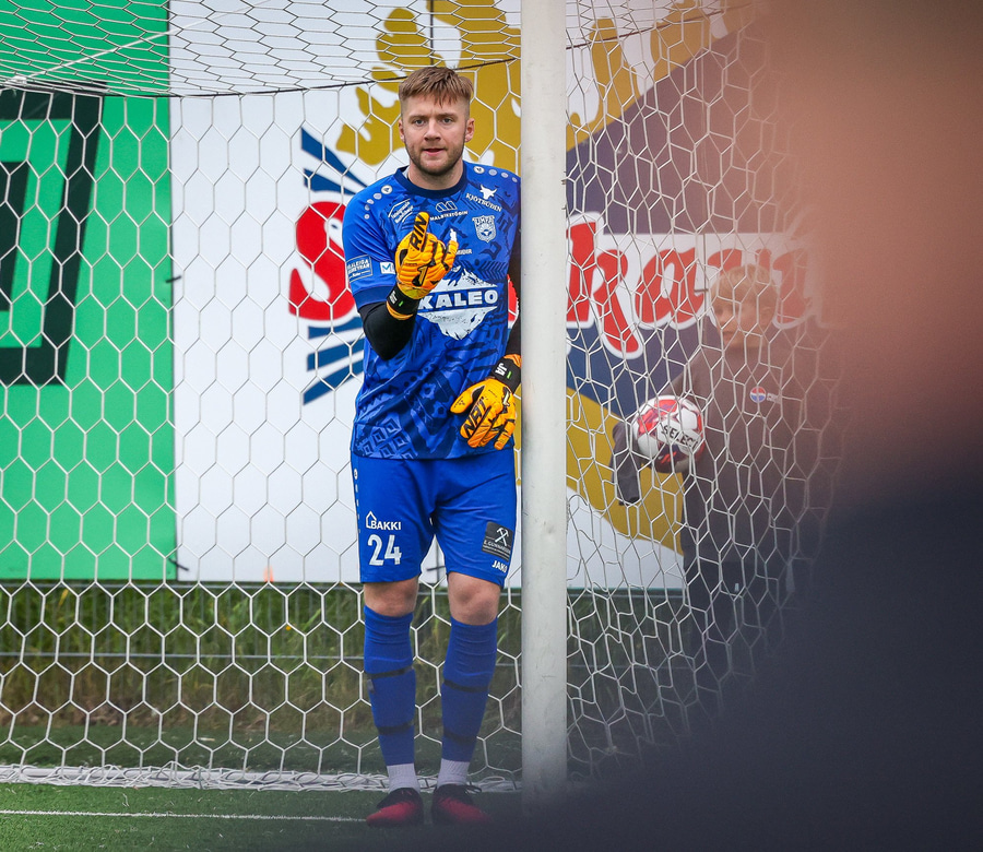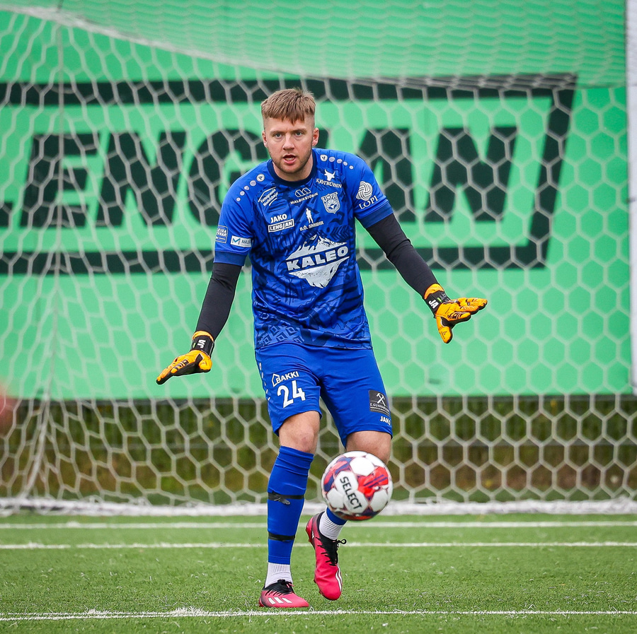 Aron Dagur hreinlega veiðir hann í sitt horn og ver glæslilega í stöng og út. Frákastið berst á Hrannar að mér sýnist sem hamrar boltann yfir markið.
