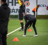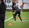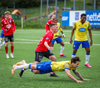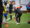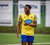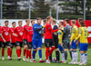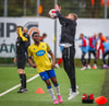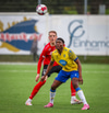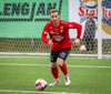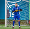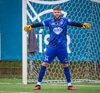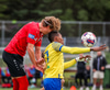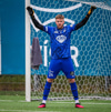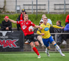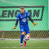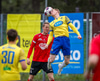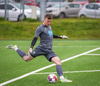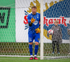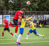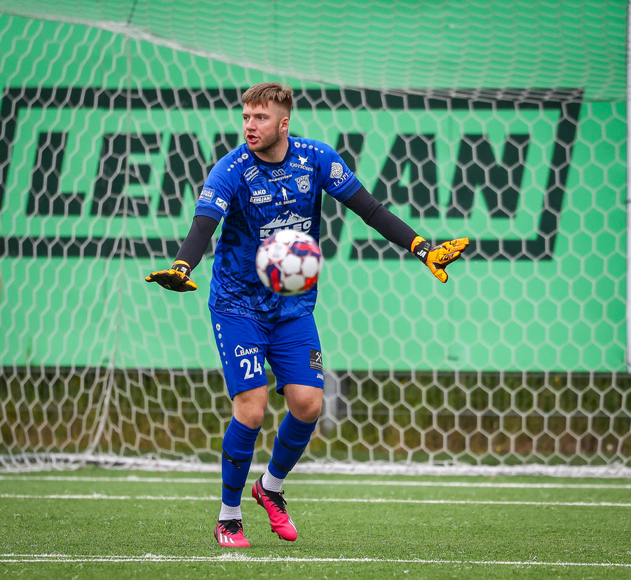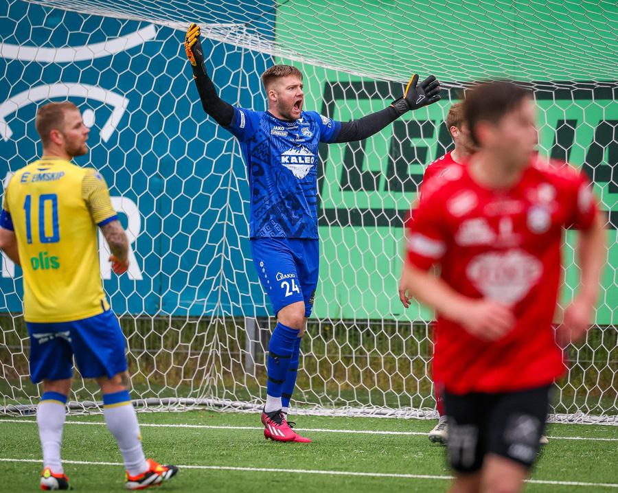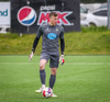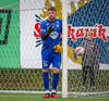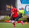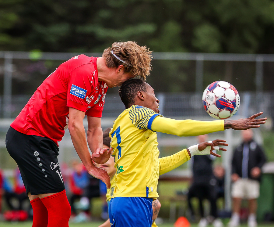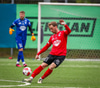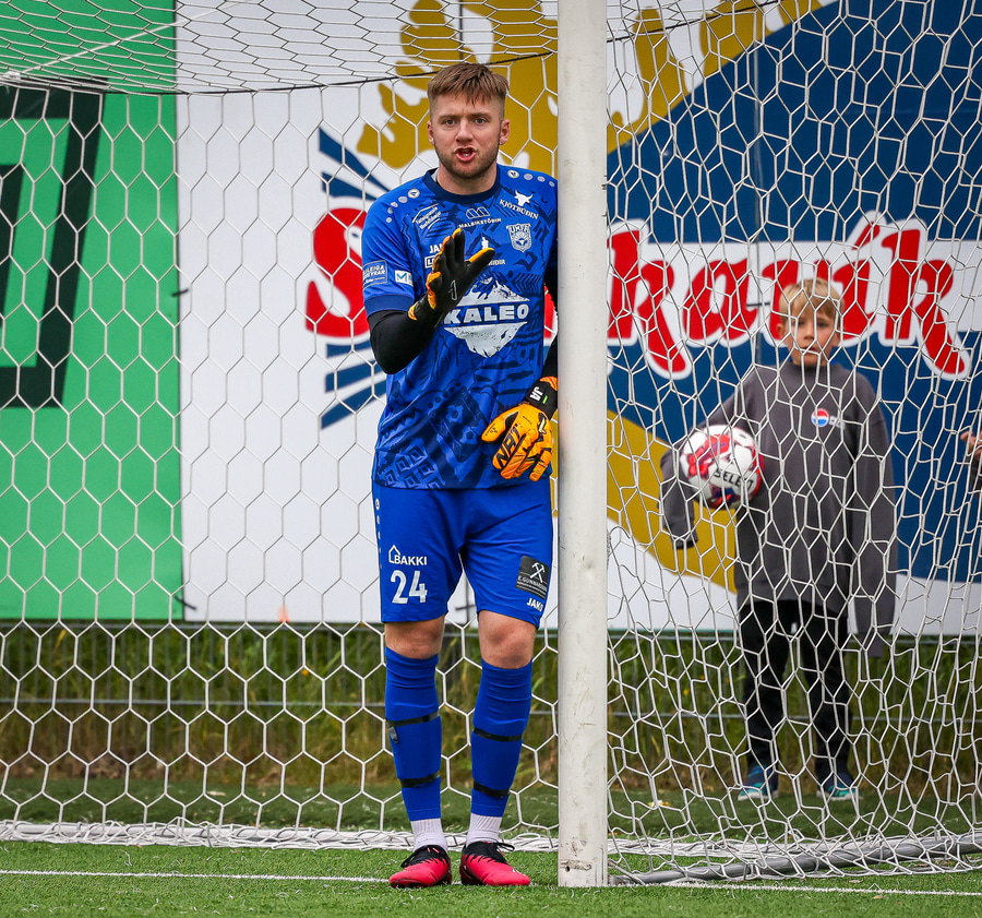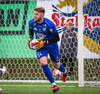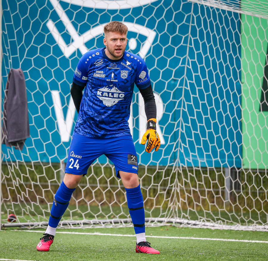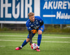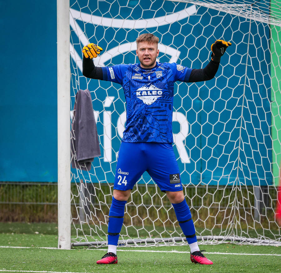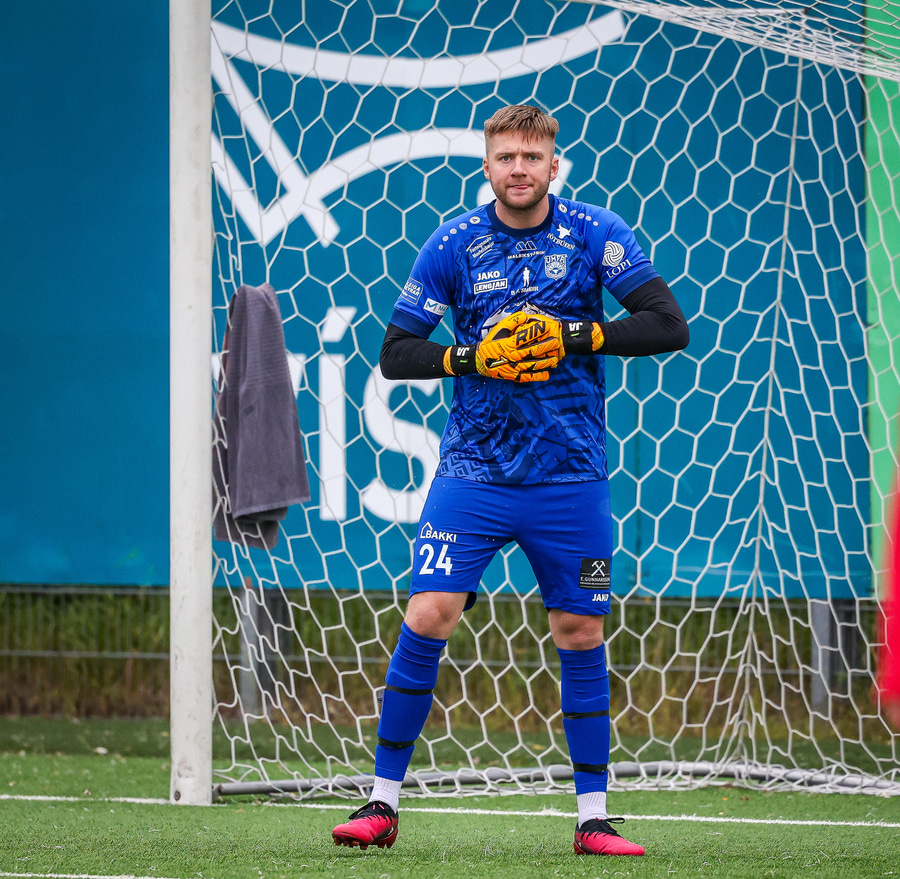 Daniel Arnaud Ndi með skalla eftir aukaspyrnuna en Jökull með allt á hreinu og handsamar boltann.