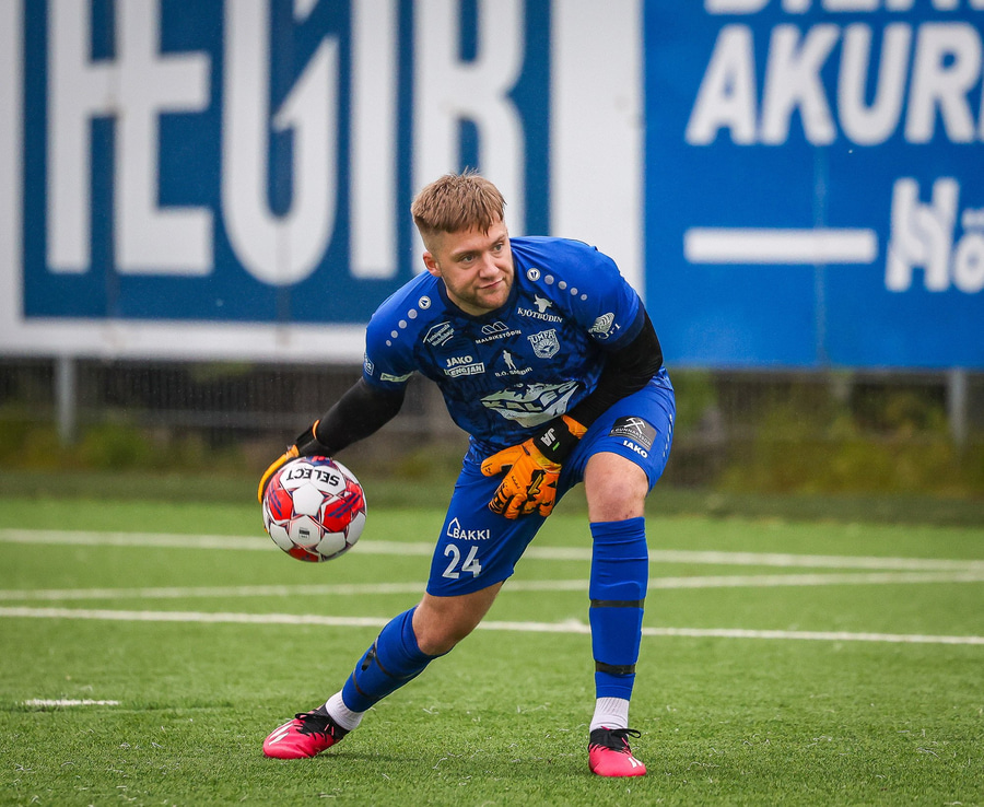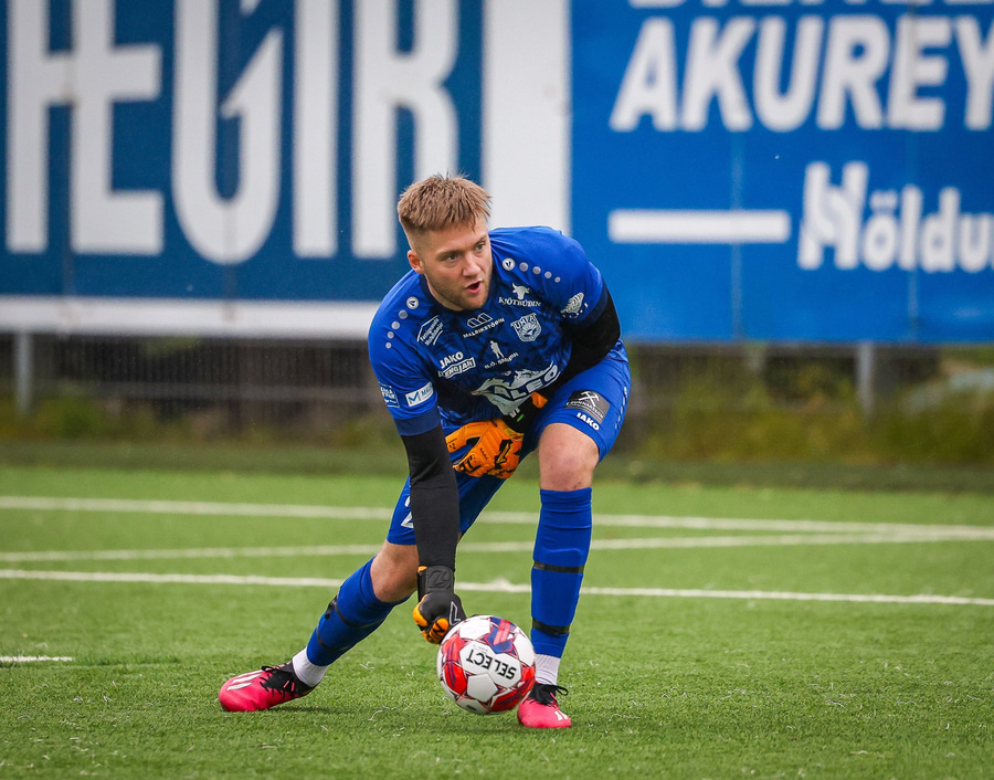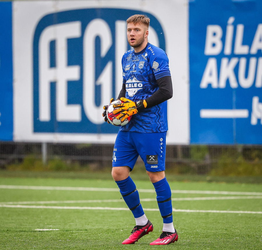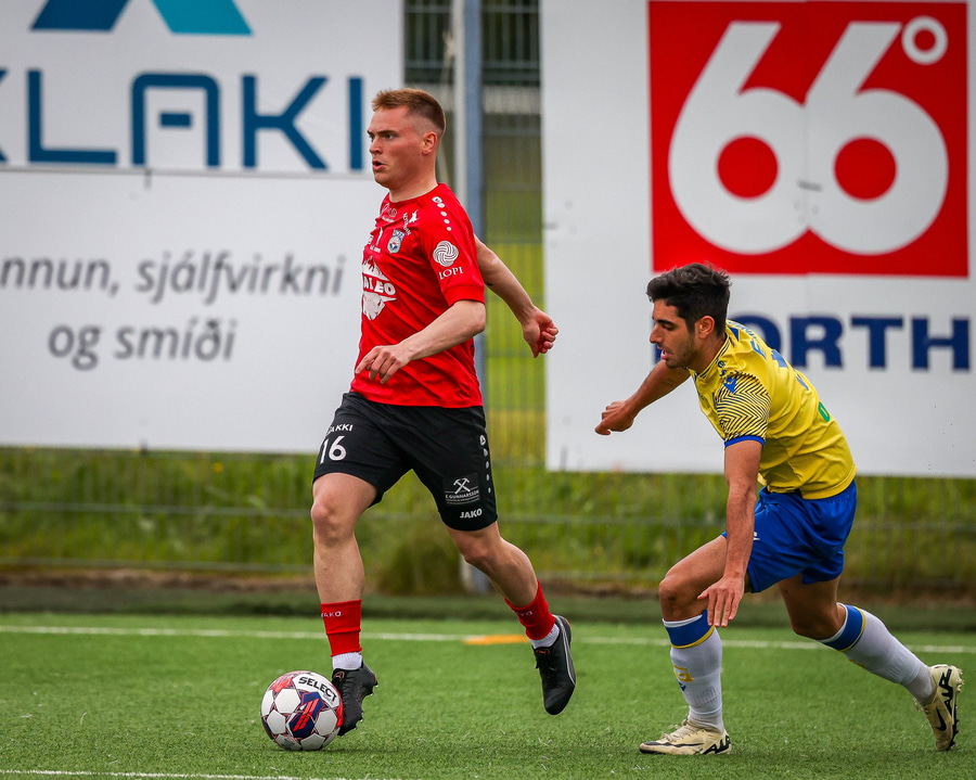 Adam Árni með gott hlaup inn á teig gestaliðsins. Fær boltann frá Ndi en nær ekki góðu skoti og Jökull ver í horn.