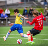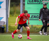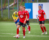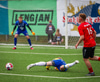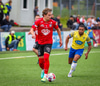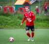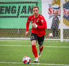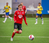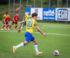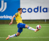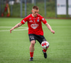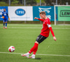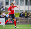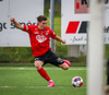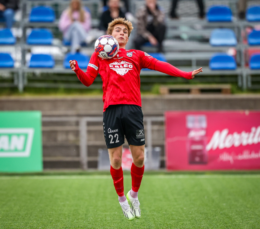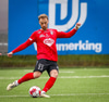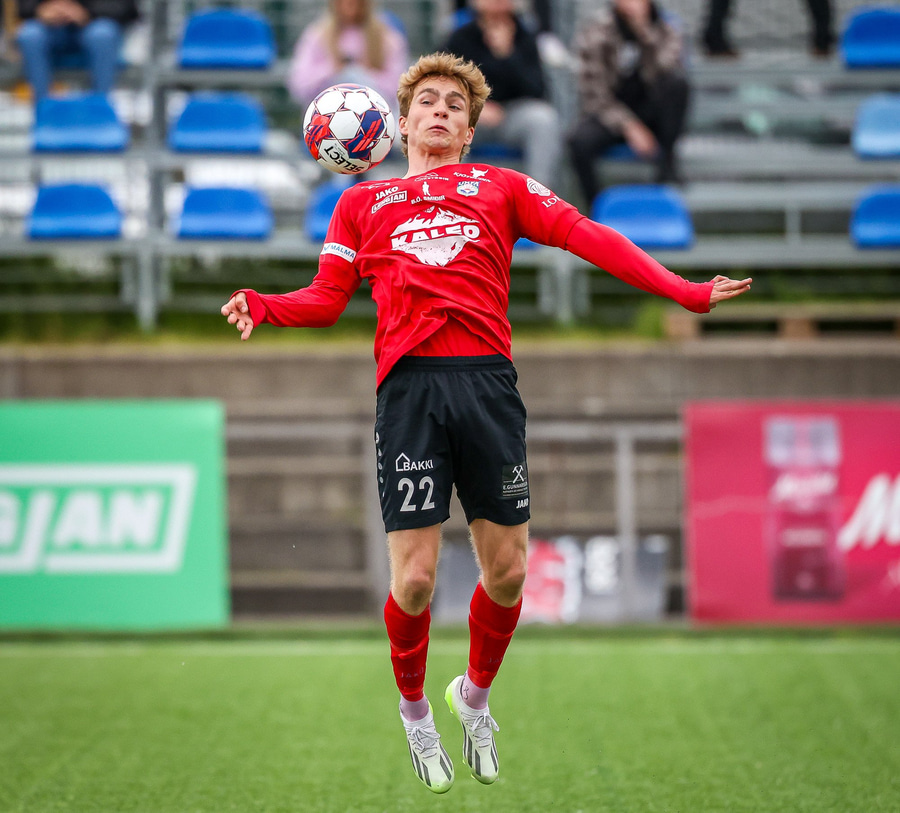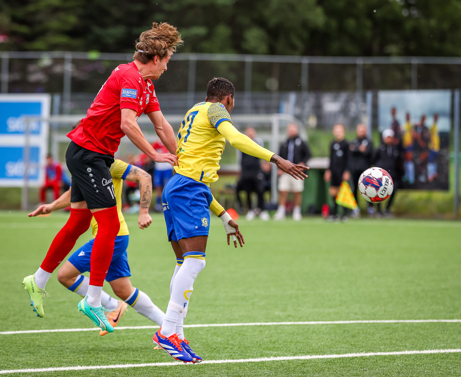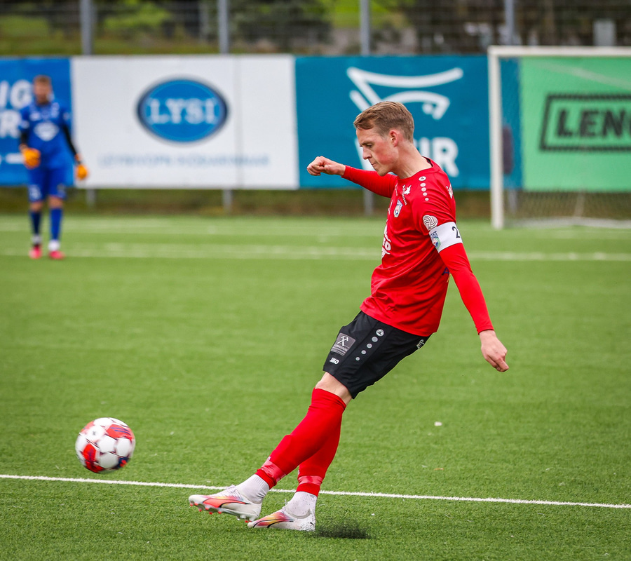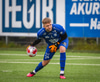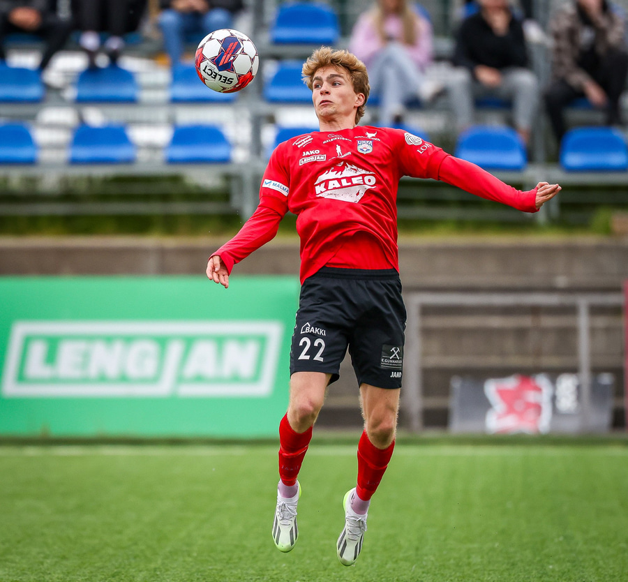 Sigurjón Rúnarsson með skalla eftir aukaspyrnuna en setur boltann framhjá markinu.
