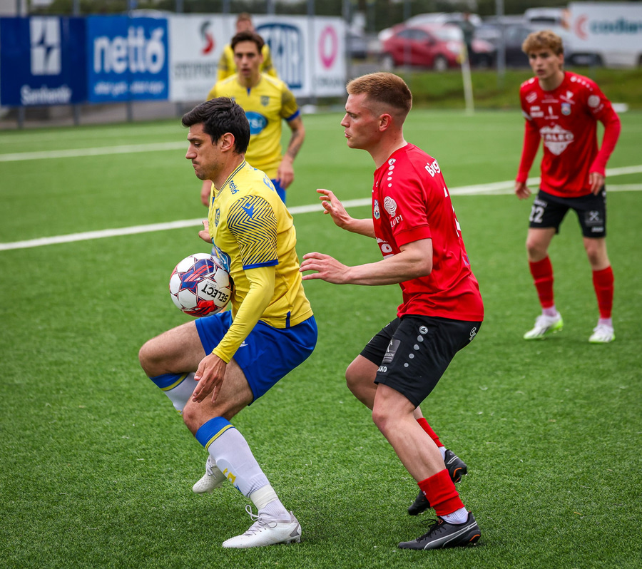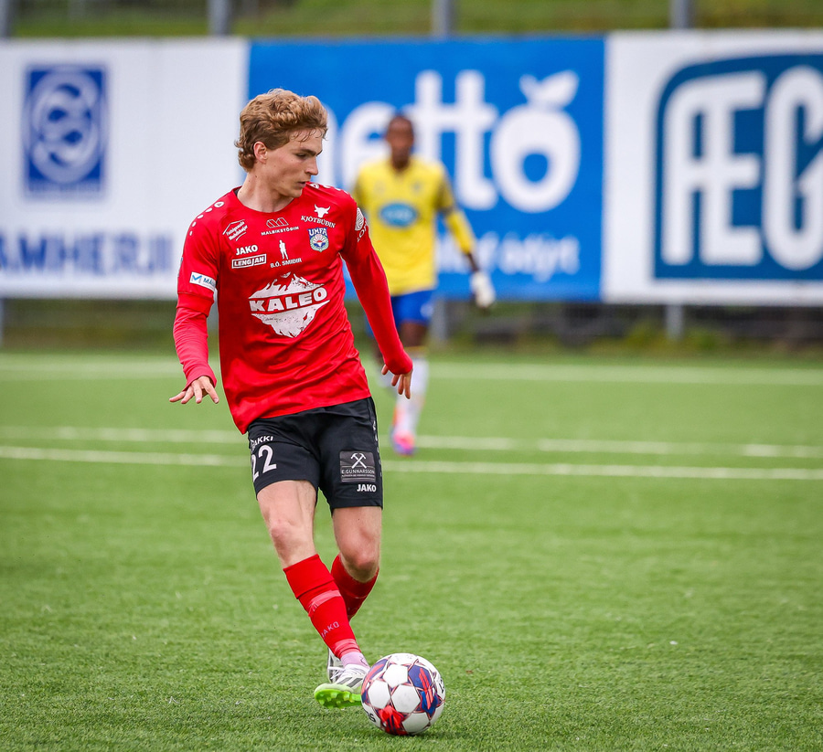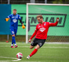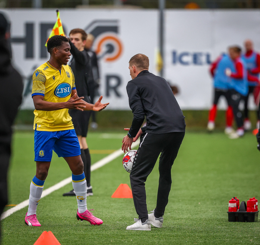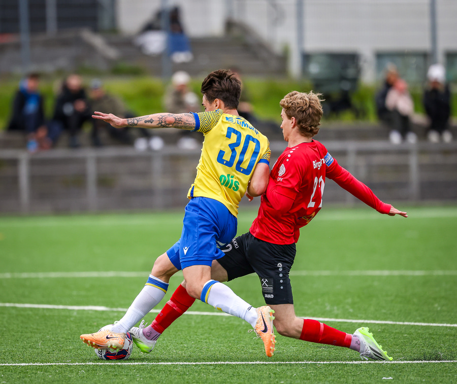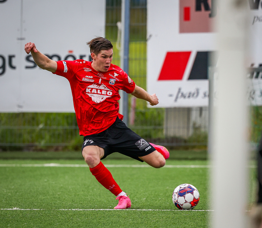 Hrannar með virkilega góða takta úti vinstra megin og keyrir inn á teiginn, kemst nokkuð óáreittur að marki og lætur vaða en Aron Dagur vel á verði og ver glæsilega.