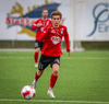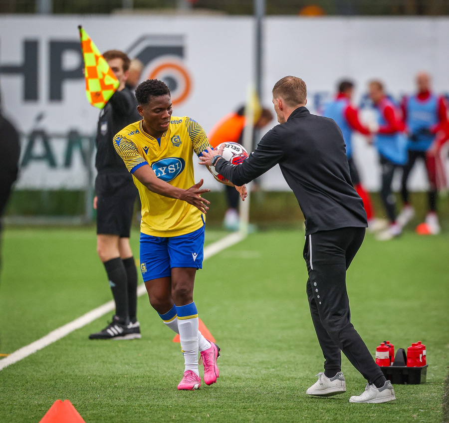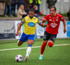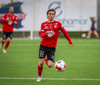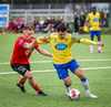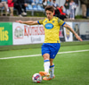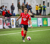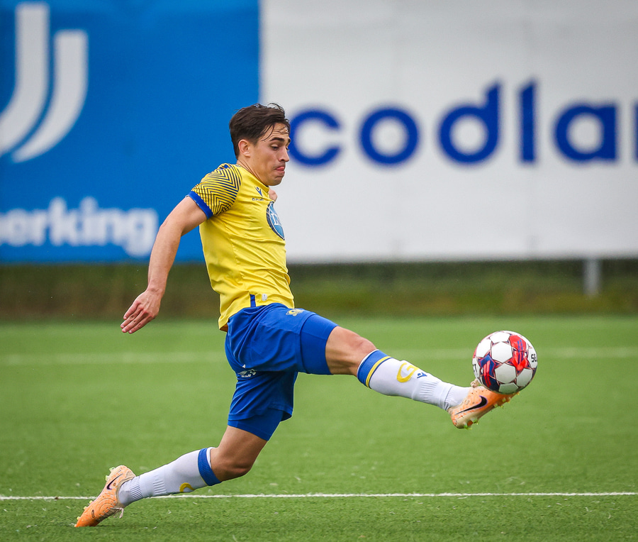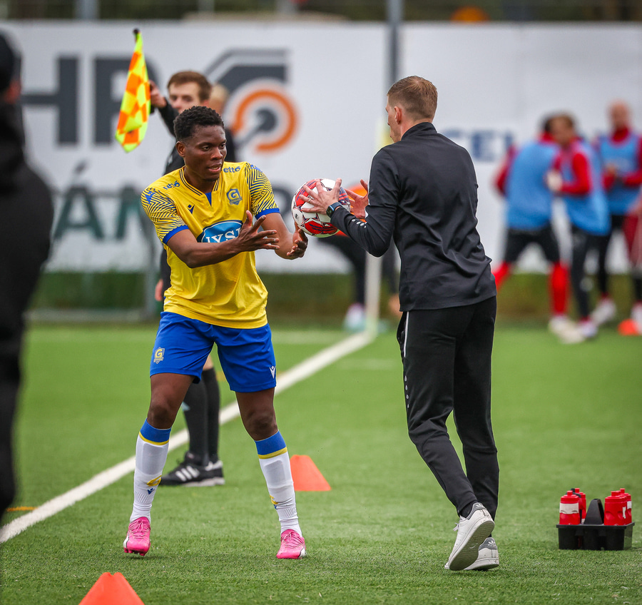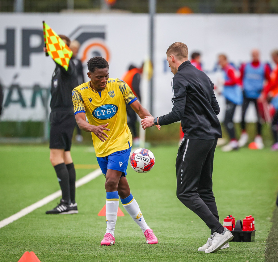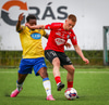Hrannar með virkilega góða takta úti vinstra megin og keyrir inn á teiginn, kemst nokkuð óáreittur að marki og lætur vaða en Aron Dagur vel á verði og ver glæsilega.