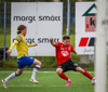 Georg Bjarnason í fínasta færi í teignum eftir sendingu frá Elmari en Aron Dagur ver vel í horn.