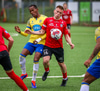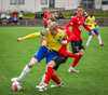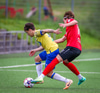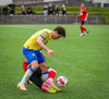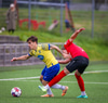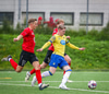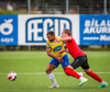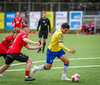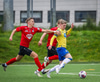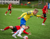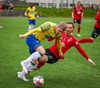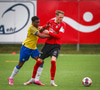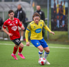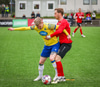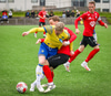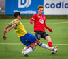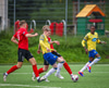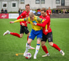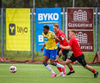 Adam Árni með góðan sprett og við það að vinna sig í færi. Varnarmenn komast fyrir og hreinsa.