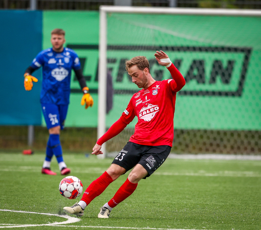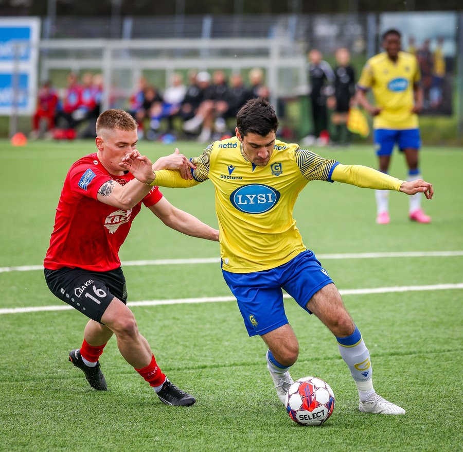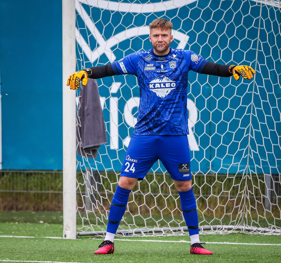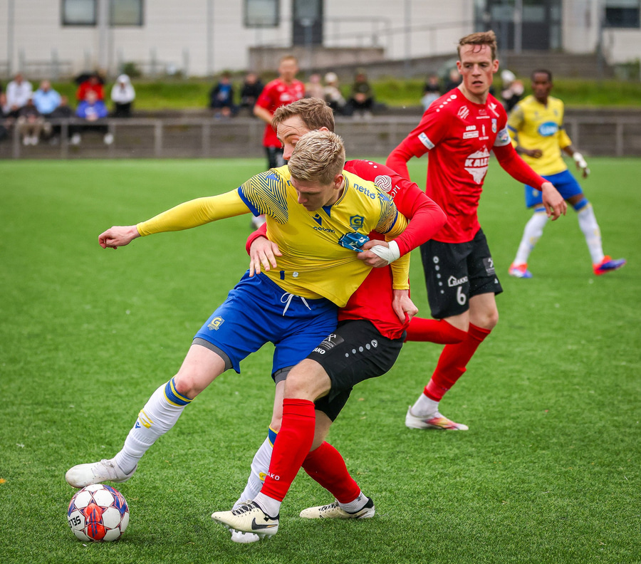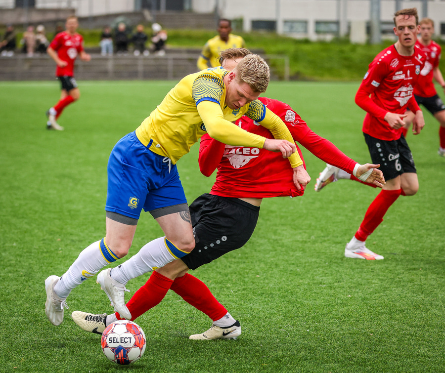 Josip reynir skotið af 20 metrum fyrir Grindavík en veldur Jökli ekki vandræðum.