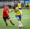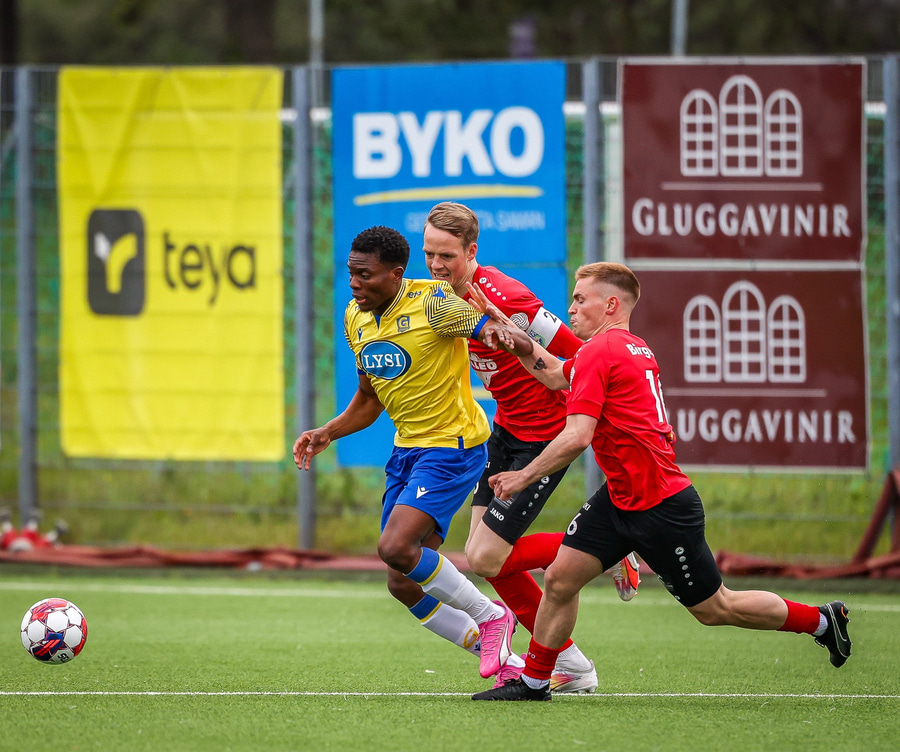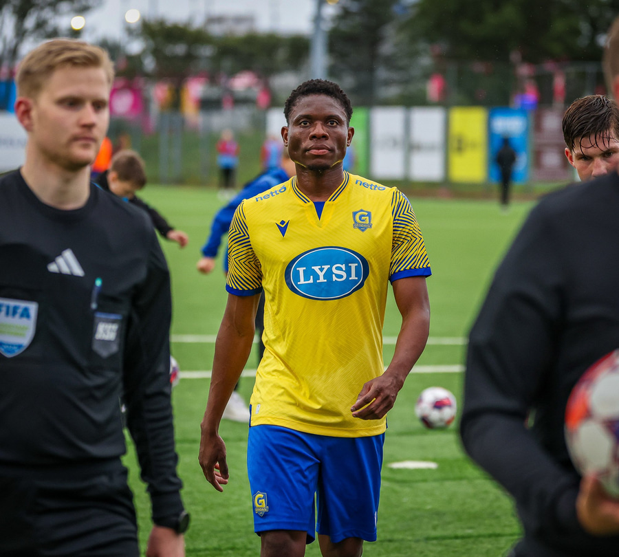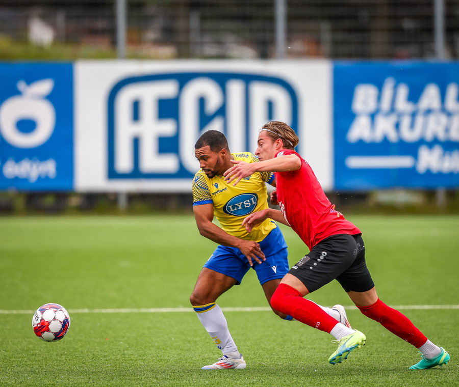 Kwame Quee með lúmska sendingu inn á teiginn fyrir Ndi, hann skrefinu of seinn og boltinn rúllar í fang Jókuls.
