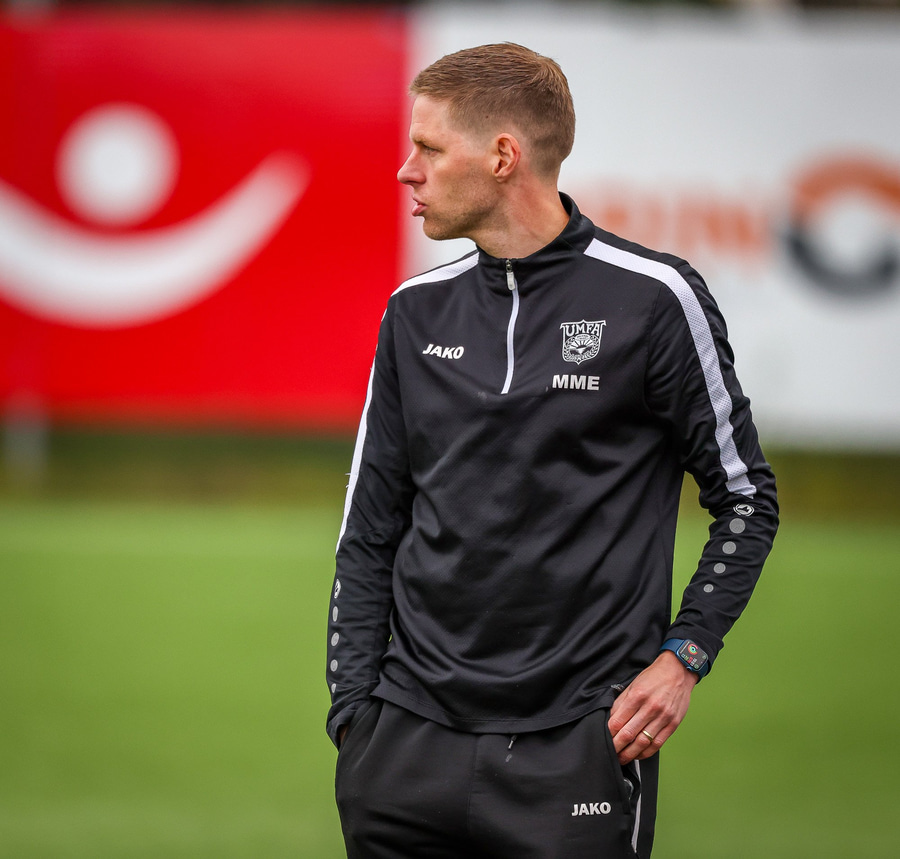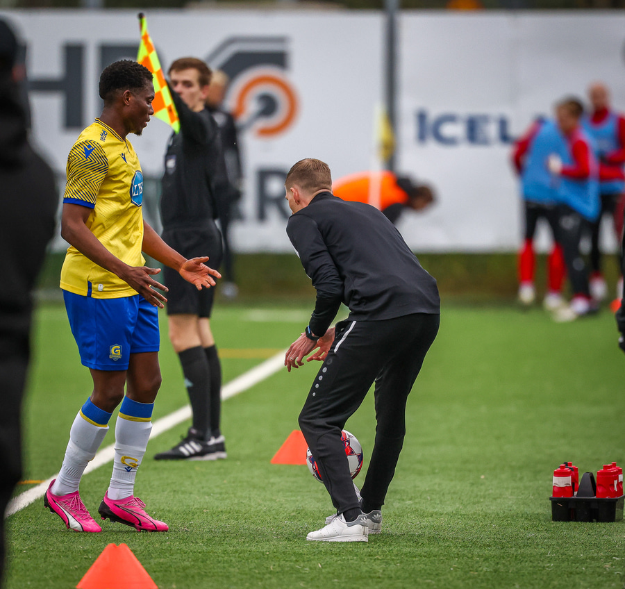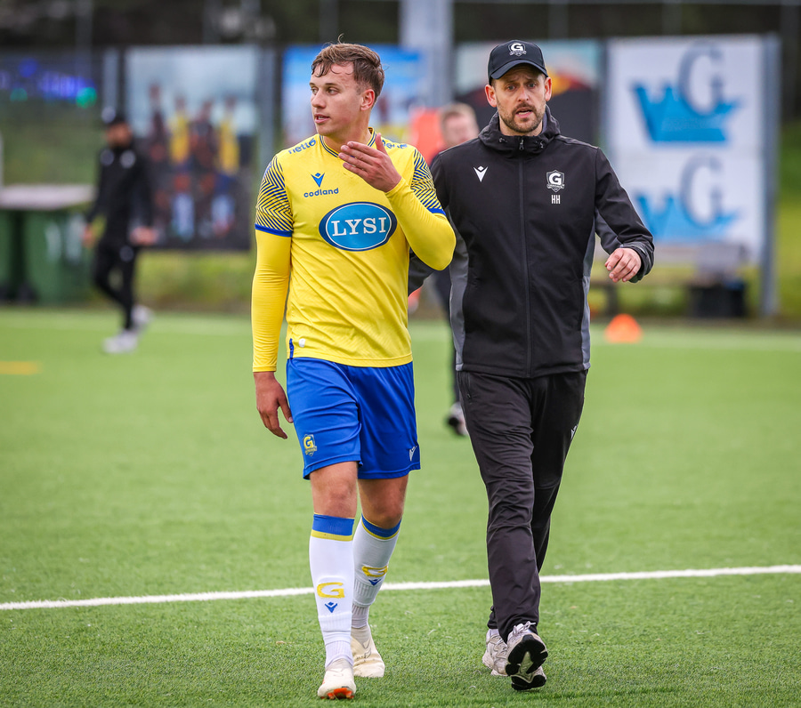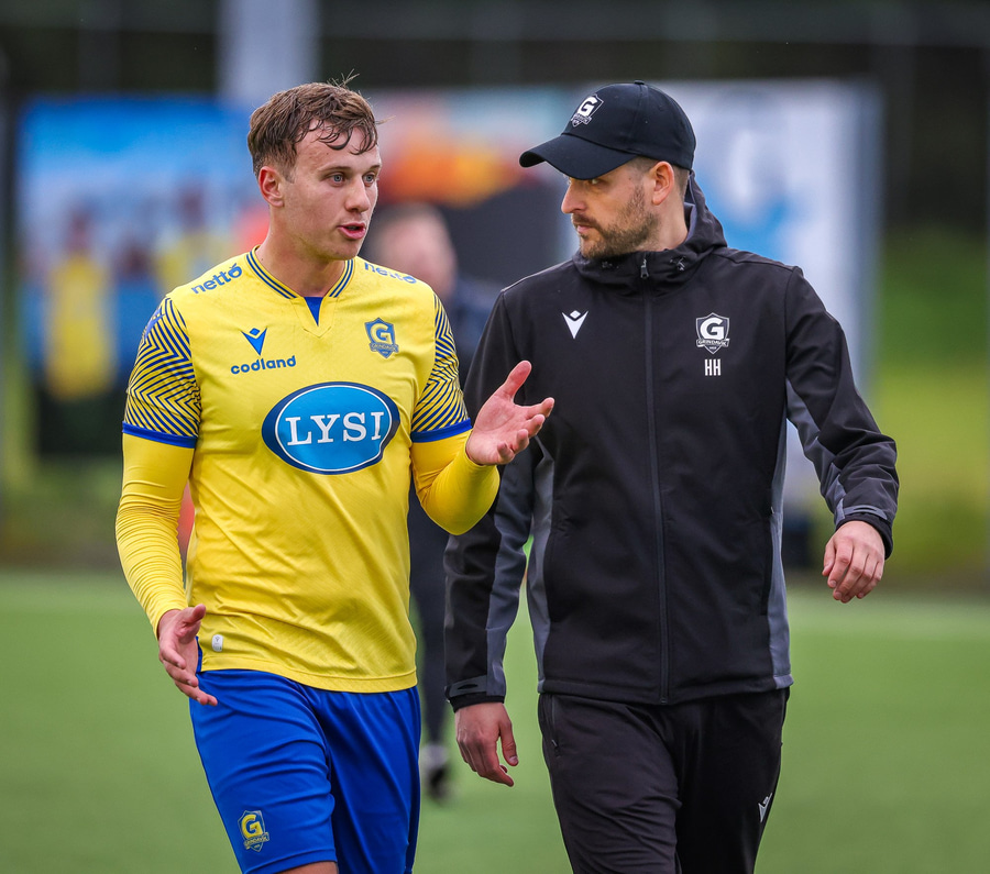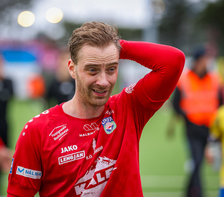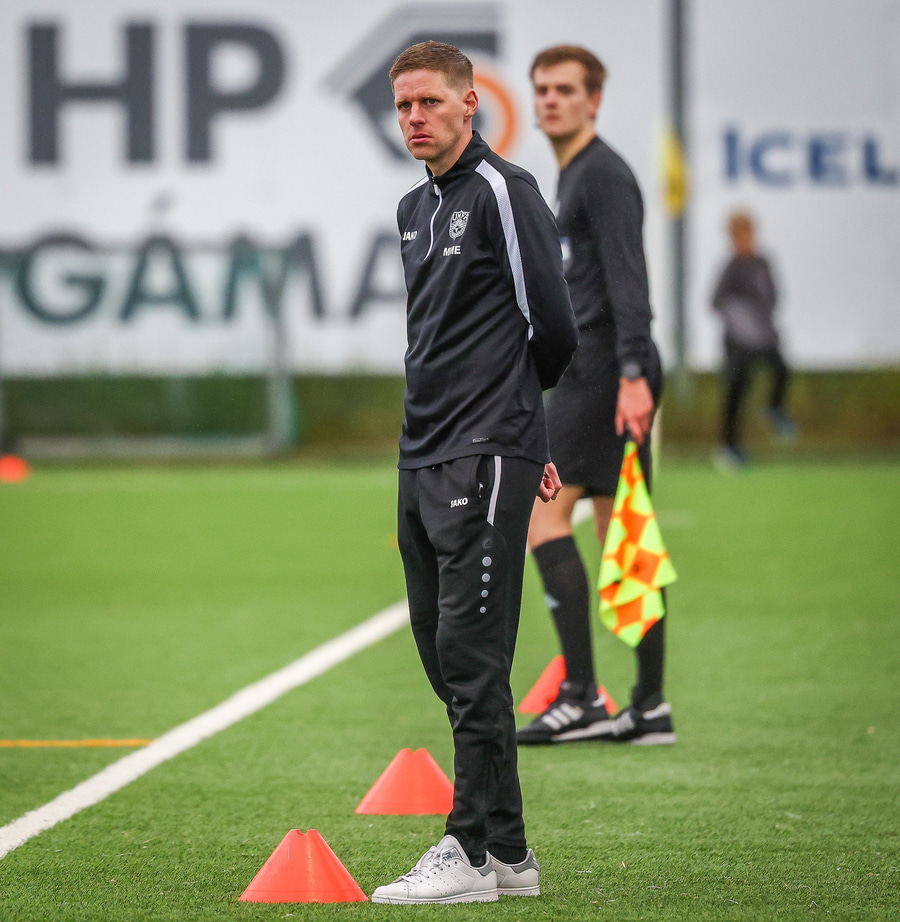 Geri ráð fyrir að þar sé Guðgeir að kalla leikmenn til vallar.