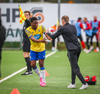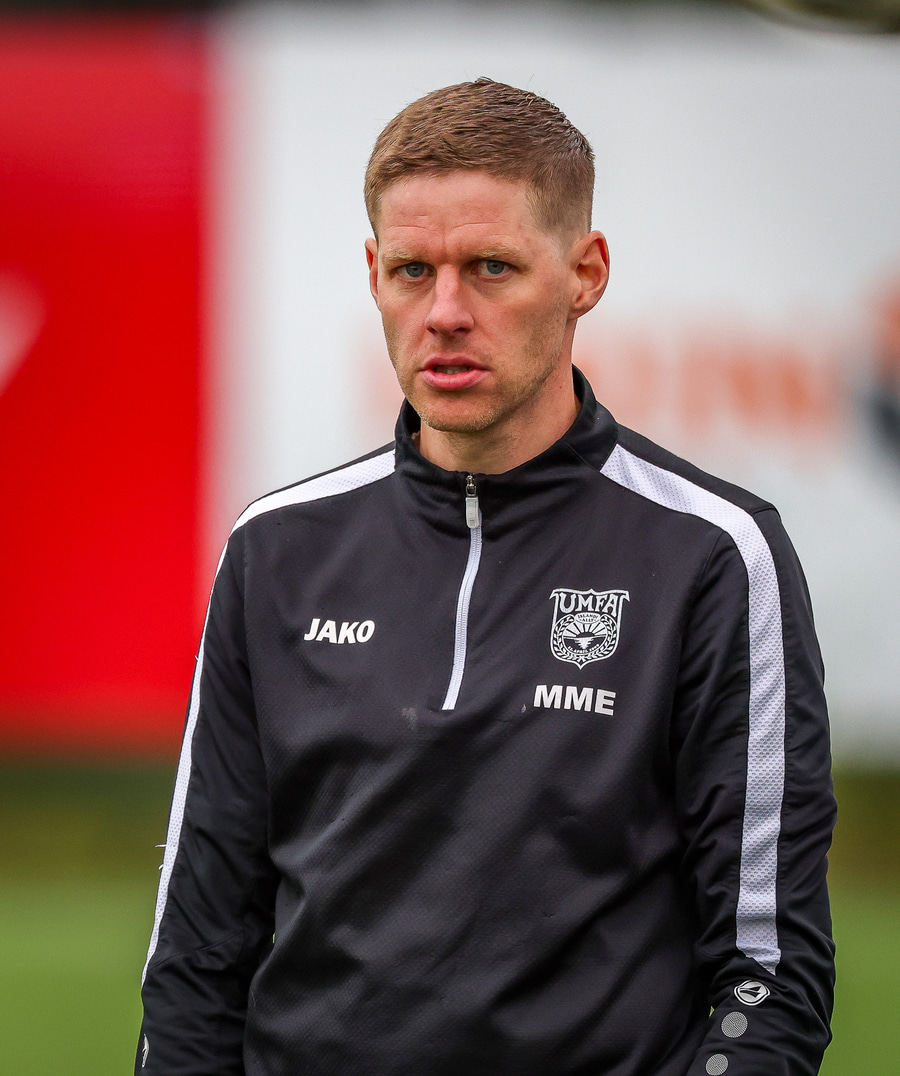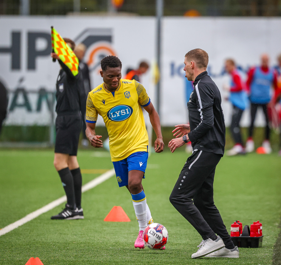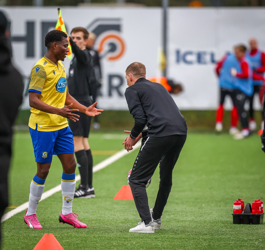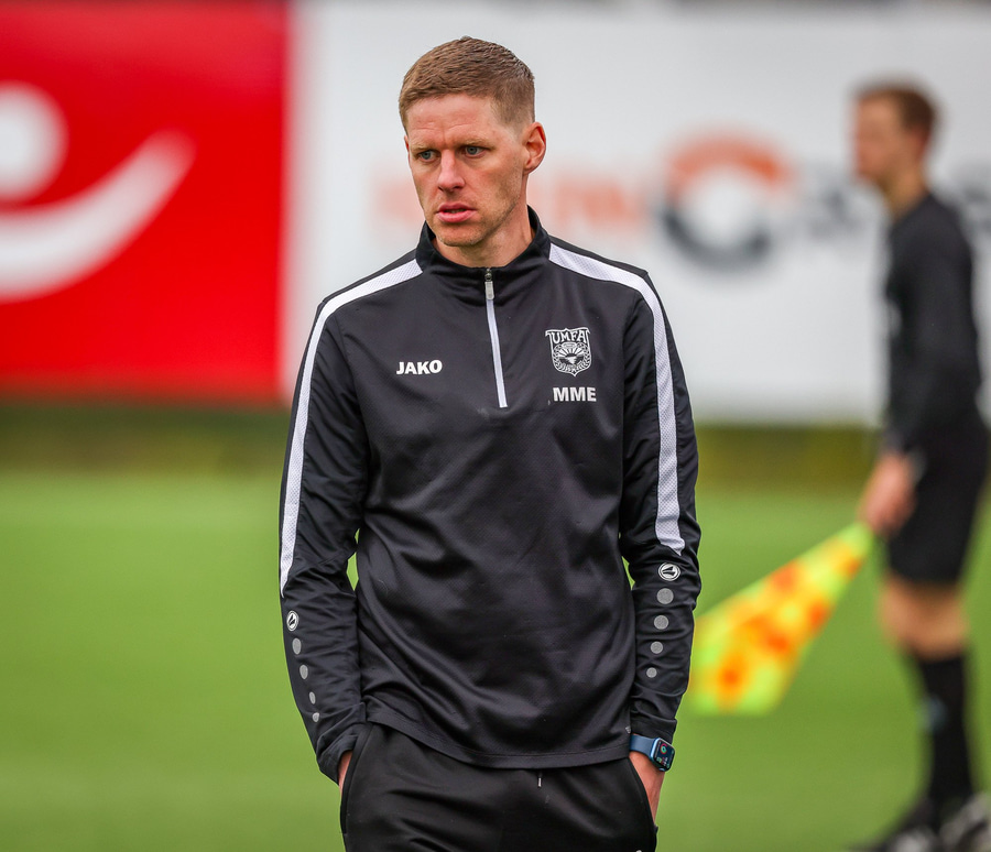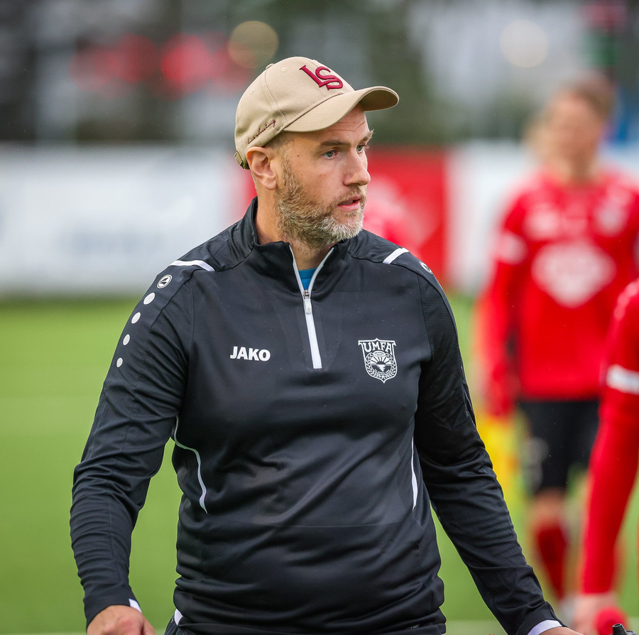 Geri ráð fyrir að þar sé Guðgeir að kalla leikmenn til vallar.