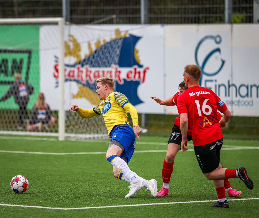 Sýnist það hafa verið Elmar sem kom boltanum í netið eftir snarpa sókn.