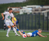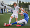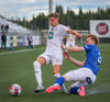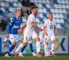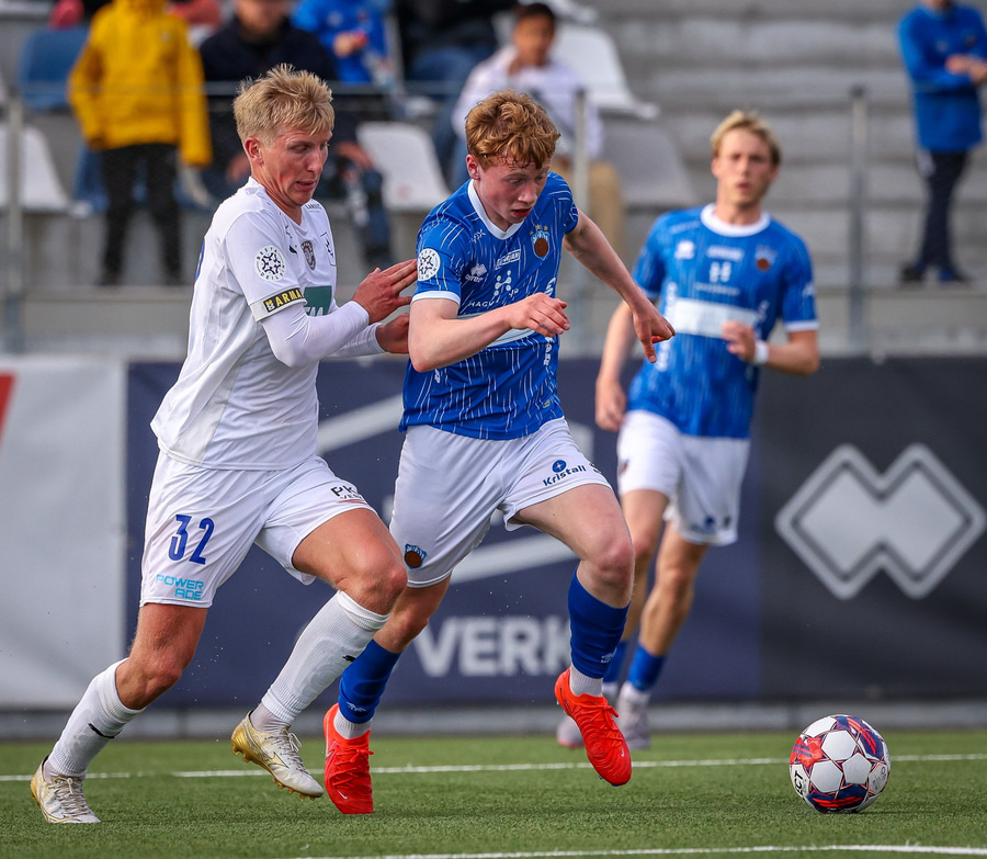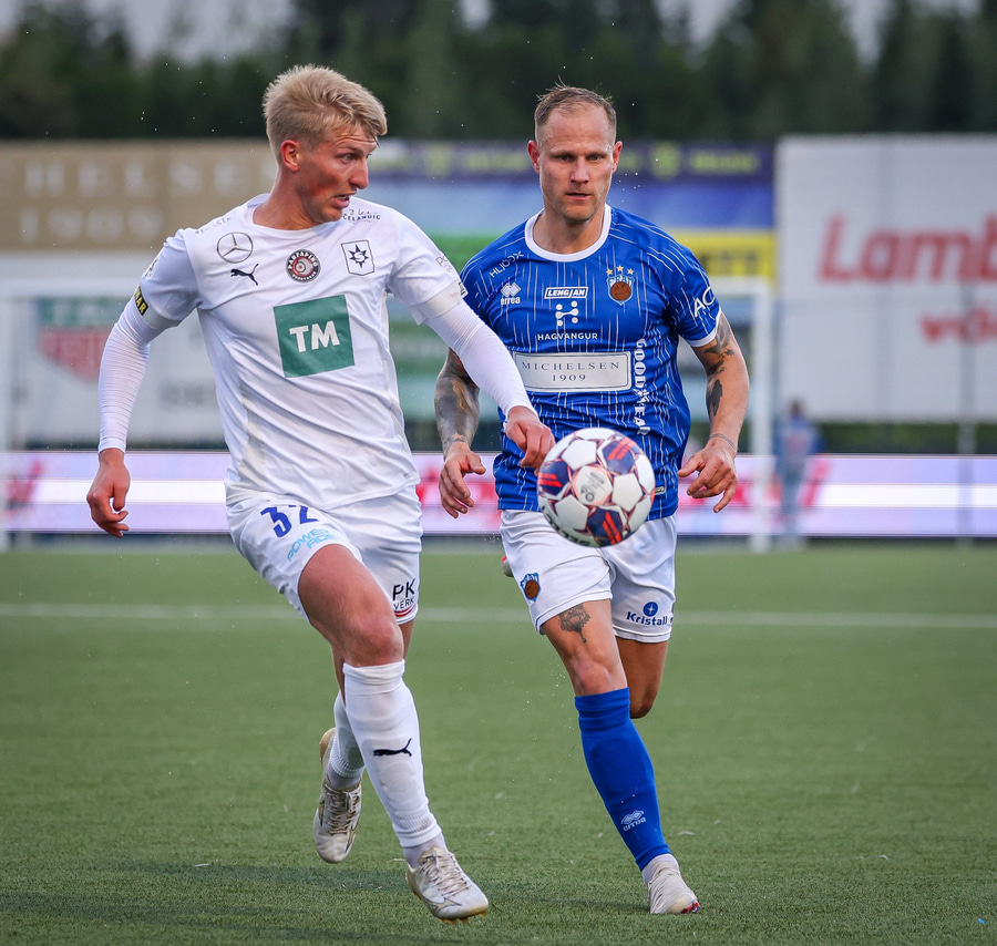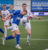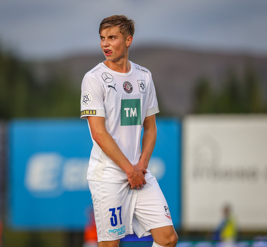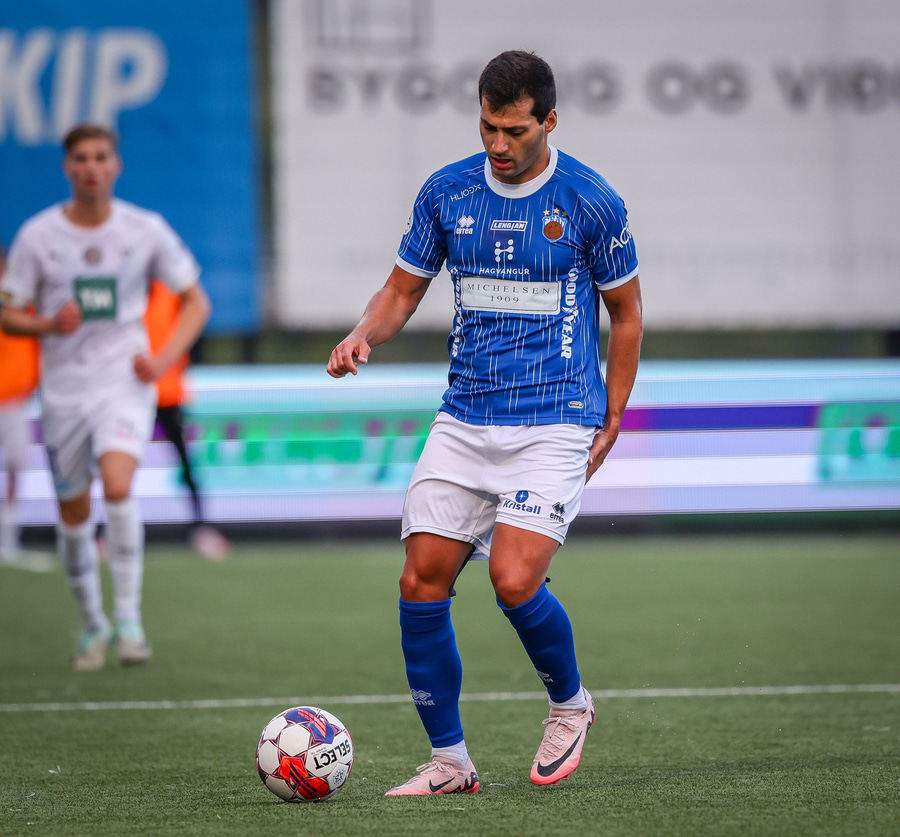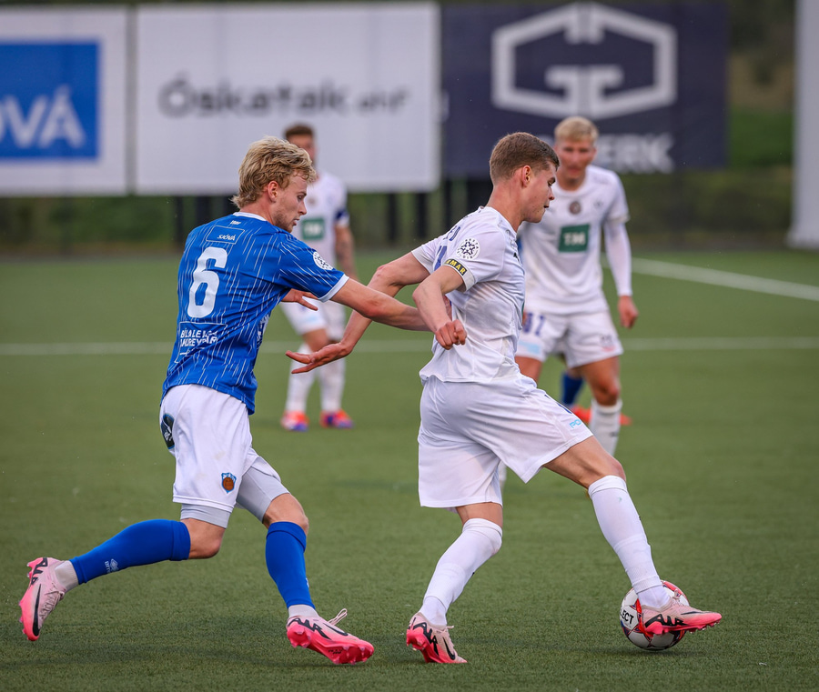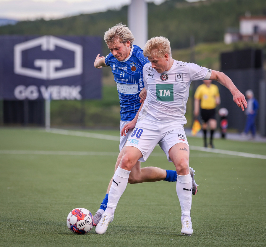 Árni Snær ískaldur og missir boltann til Djenairo sem nær ekki fullu valdi á knettinum. Gummi Kri mætir og bjargar þessu og Djenairo brýtur á honum.