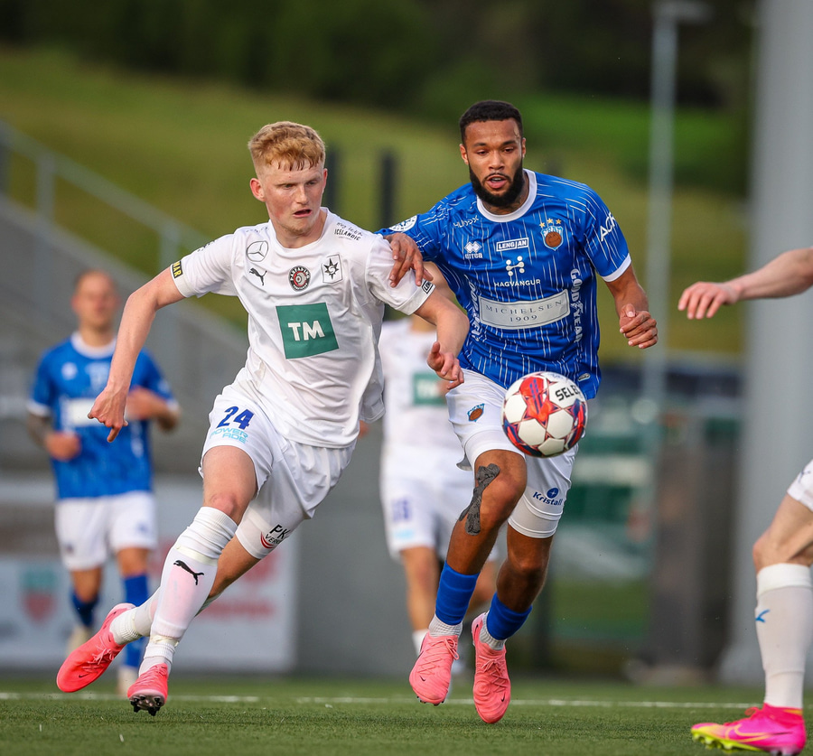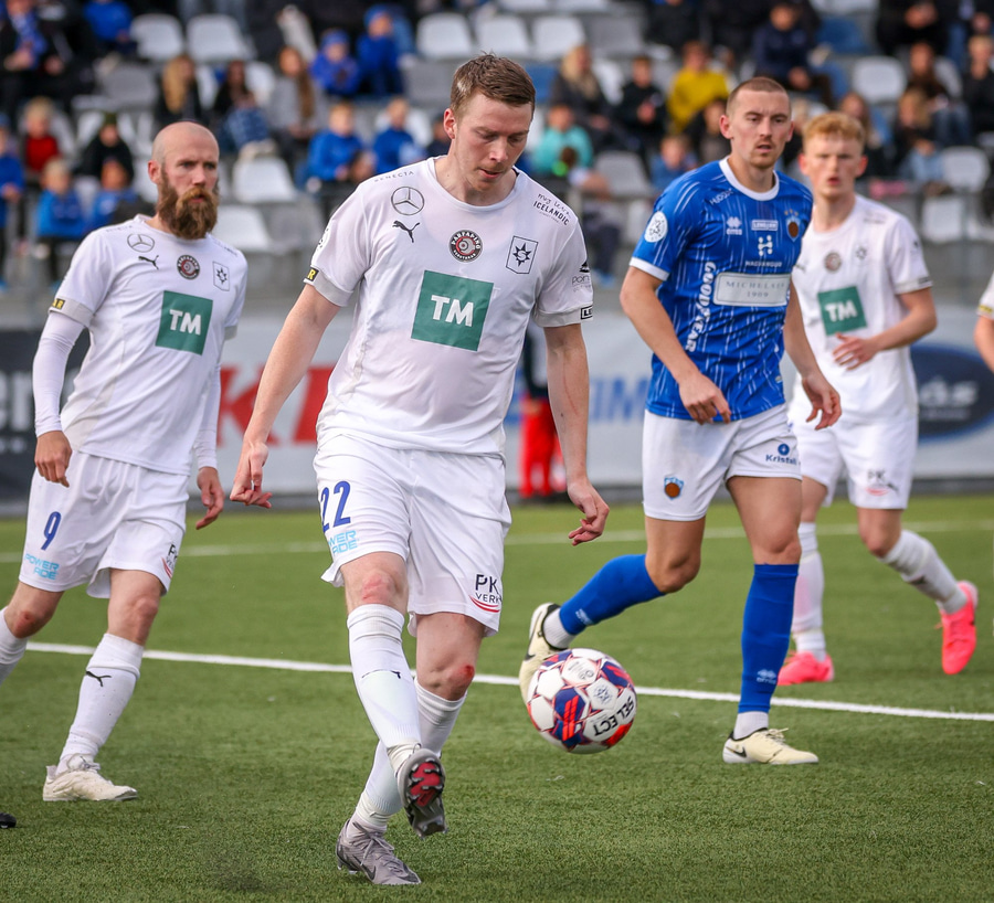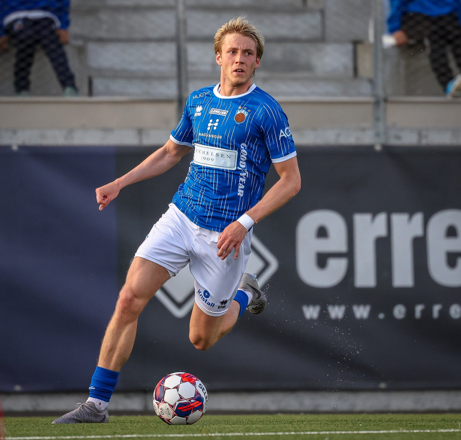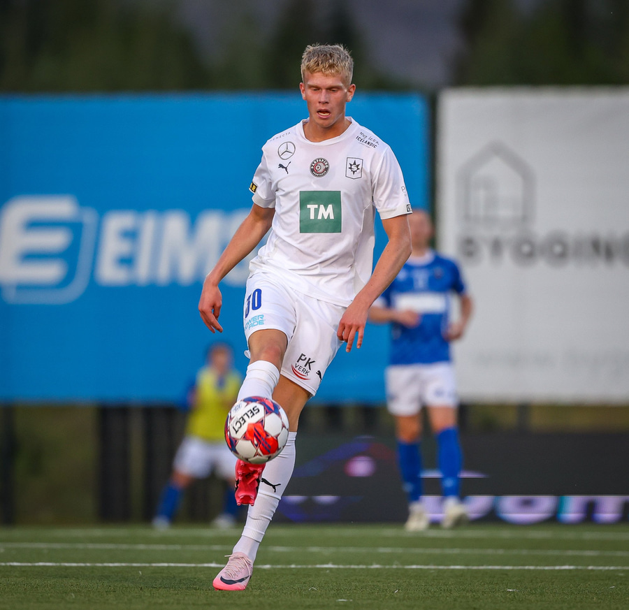 Helgi Fróði gerir vel í að opna skotvinkilinn rétt fyrir utan teig áður en hann setur boltann yfir.