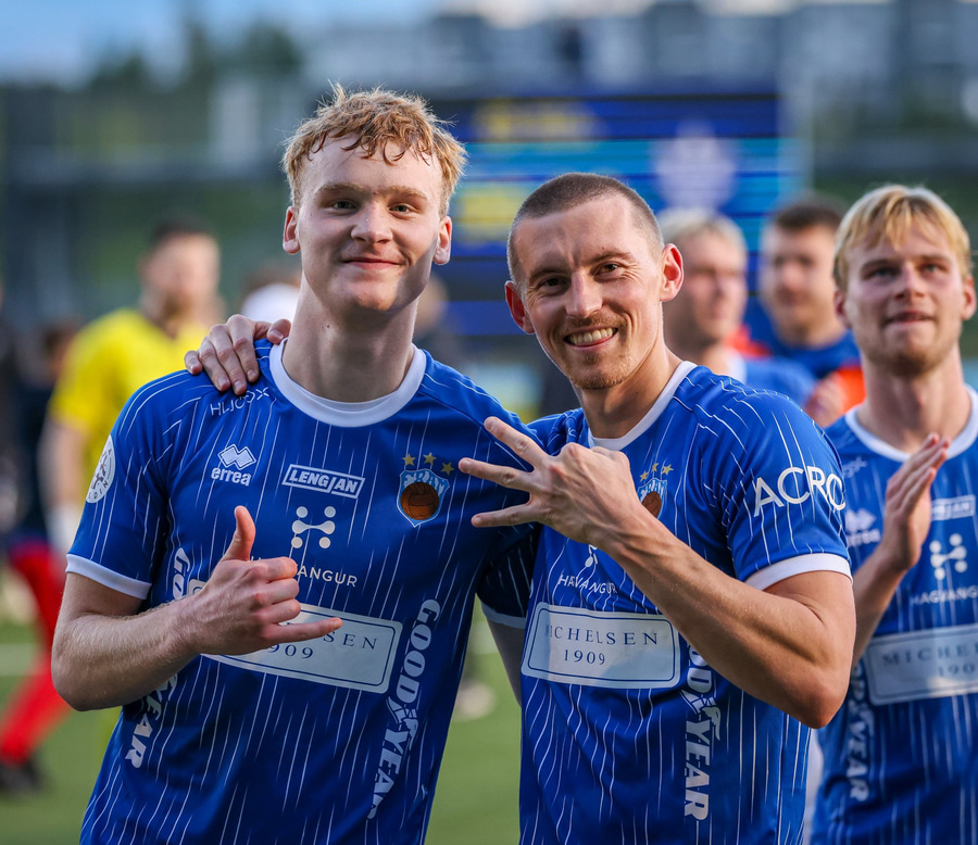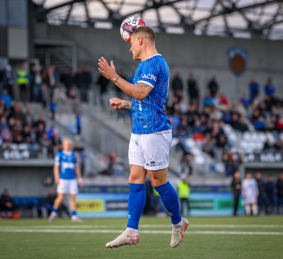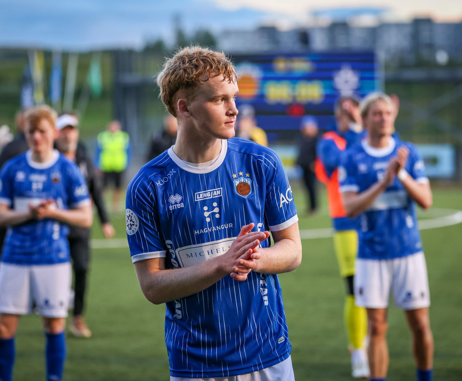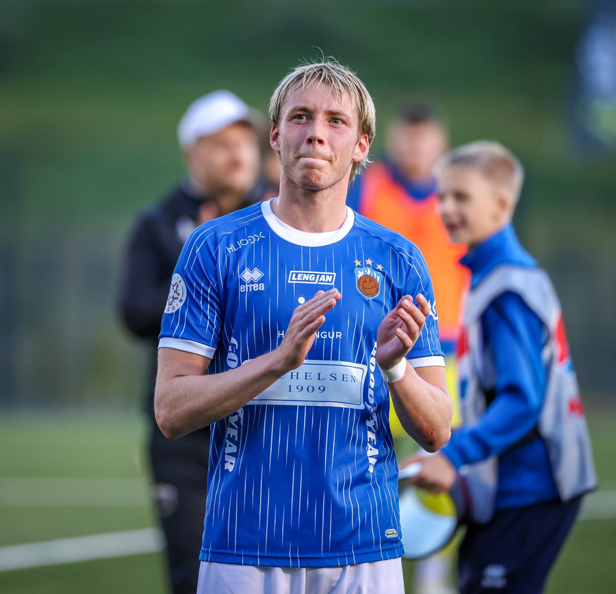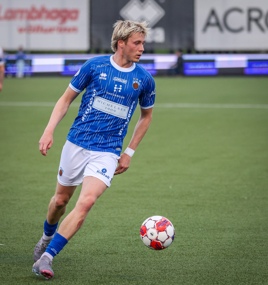 Helgi Fróði gerir vel í að opna skotvinkilinn rétt fyrir utan teig áður en hann setur boltann yfir.