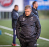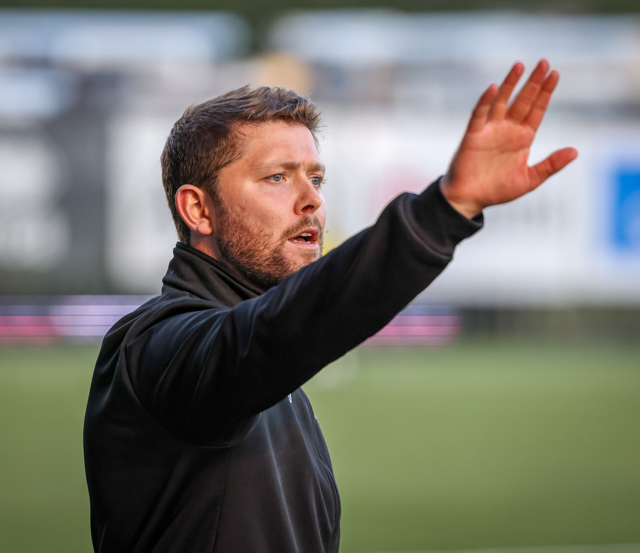 Haraldur Einar með fyrirgjöf beint á kollinn á Kyle sem nær litlum krafti í þetta af stuttu færi, Árni Snær sýnir samt snör viðbrögð og heldur þessun úti.