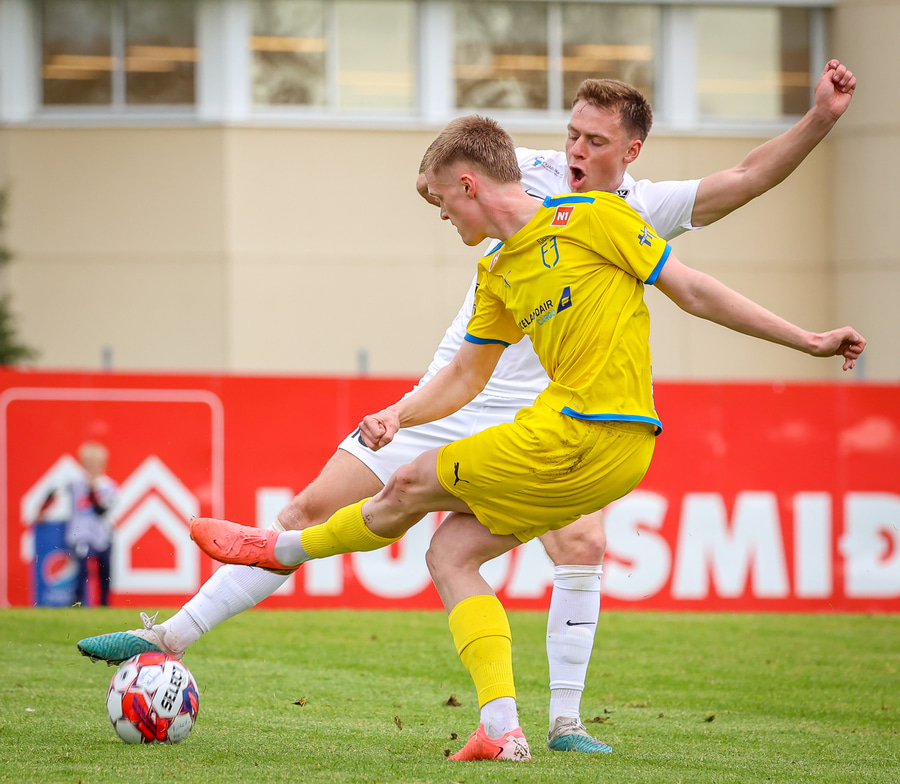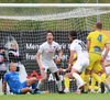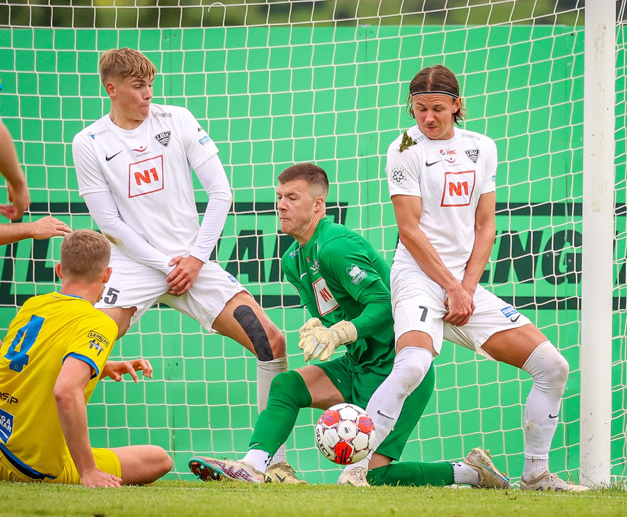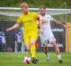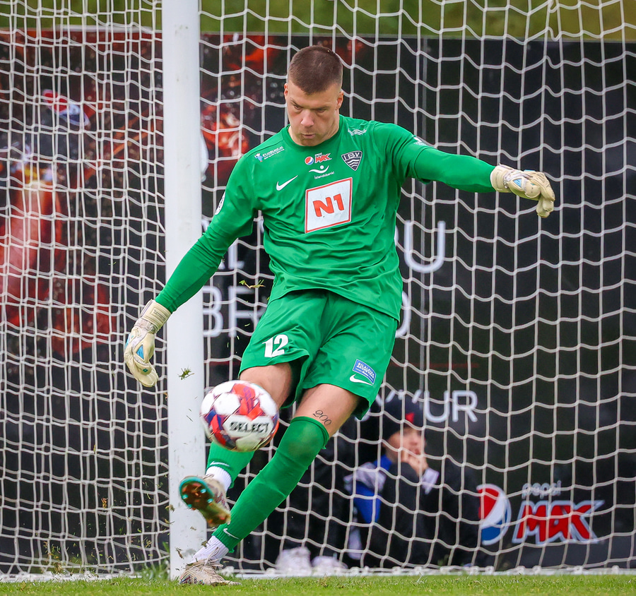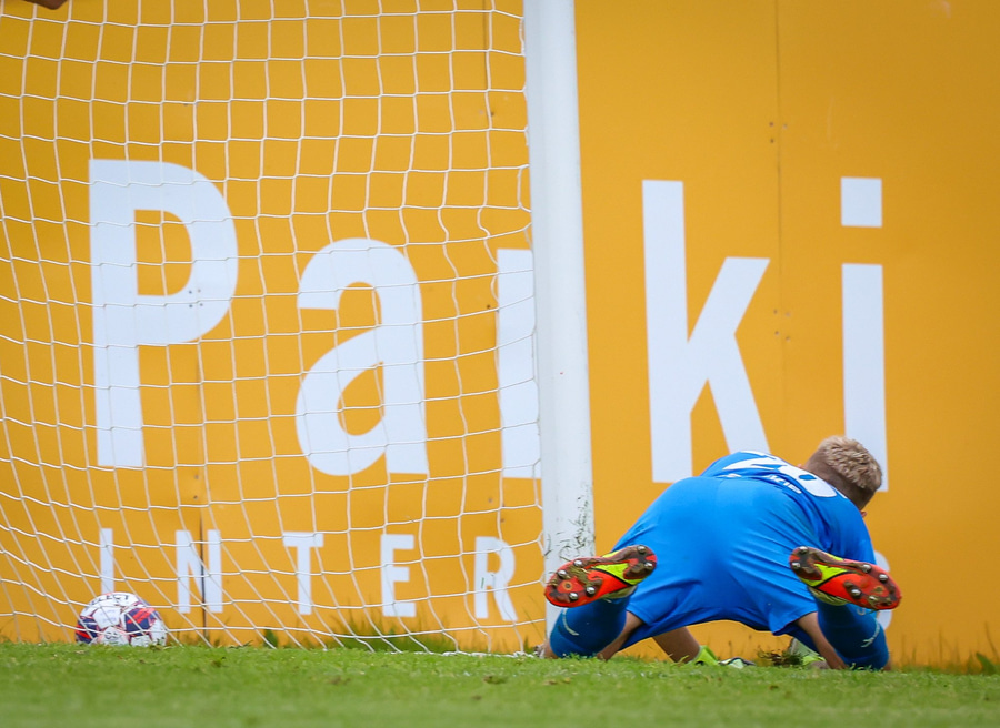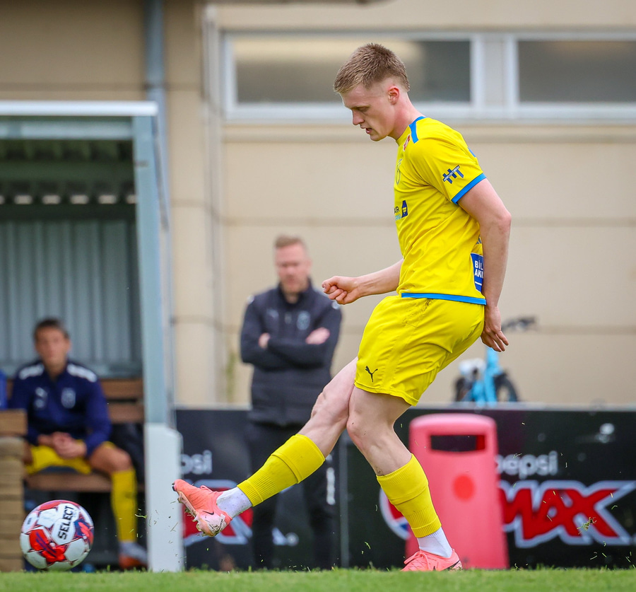 Oliver fær hættulega sendingu, Halldór Snær fer í skógarferð úr markinu og Oliver kemst framhjá honum. Á ekki í erfiðleikum með að skora í autt markið.