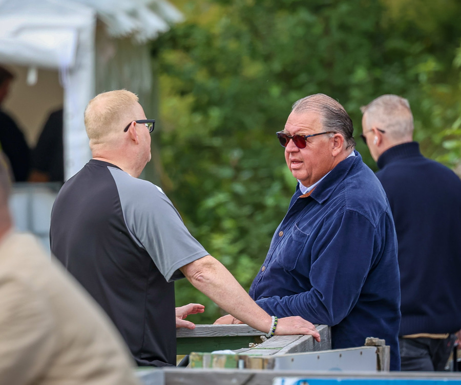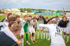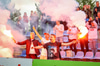 Móttökurnar eru hinsvegar fyrsta flokks og mér við hlið er drykkur sem hæfir vel fyrir seinni hluta föstudags. Vallarþulurinn er að kynna leikmenn og grilllyktin er í loftinu. Þetta verður vonandi mikil skemmtun.