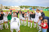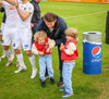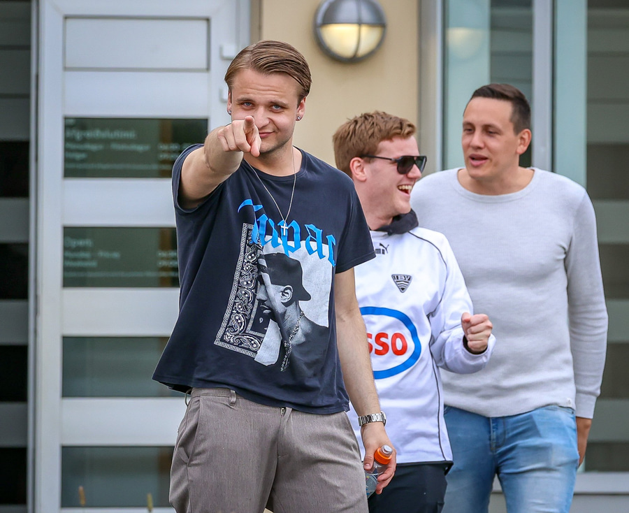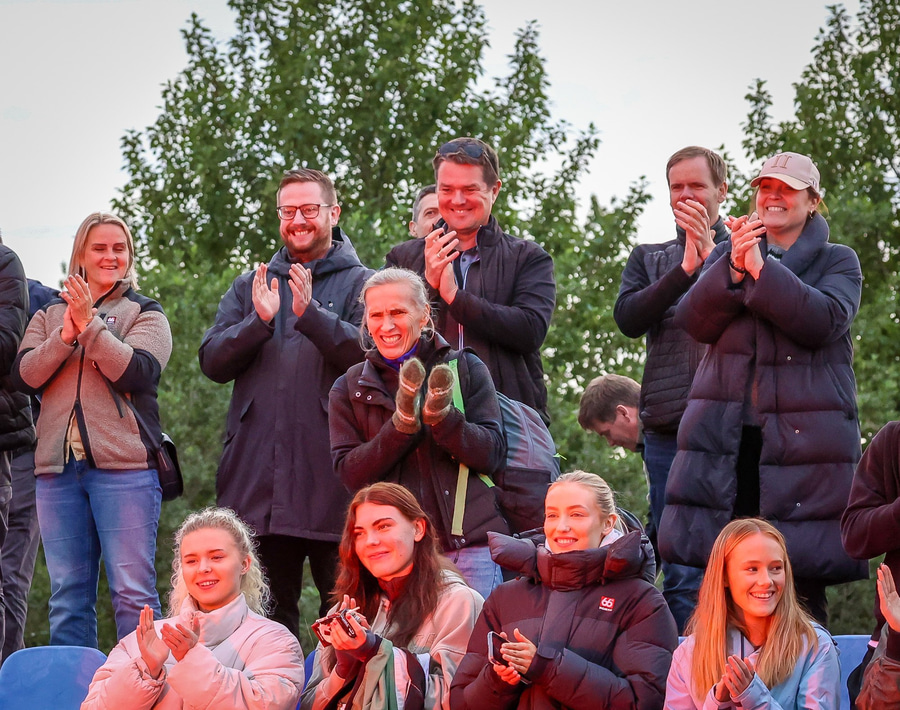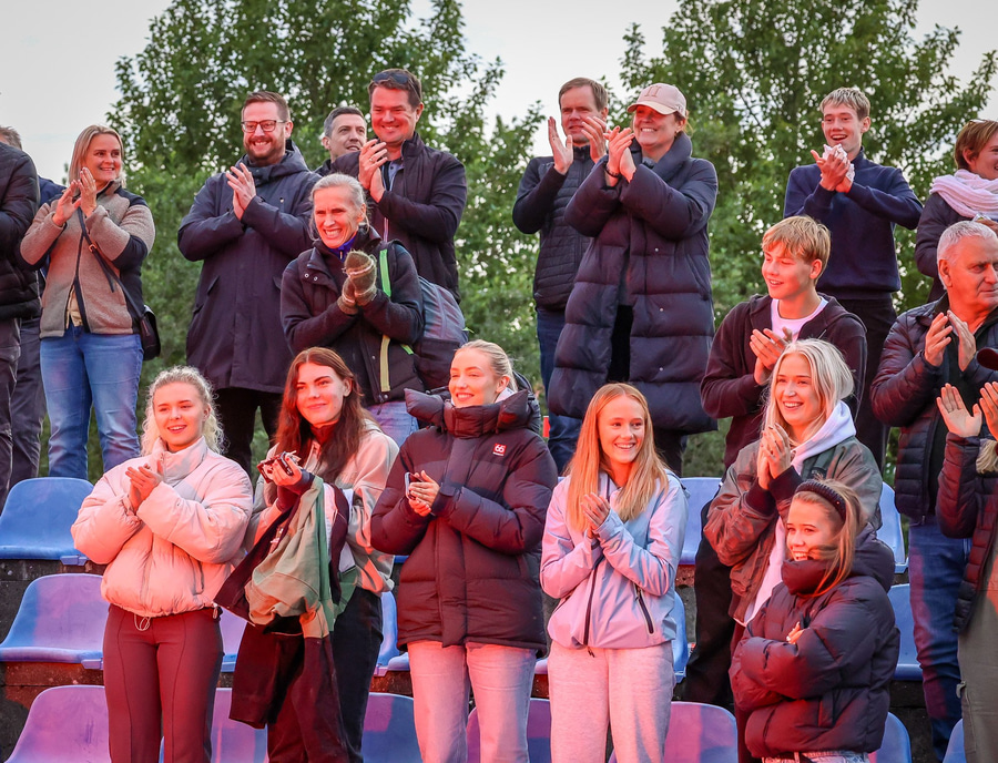 Já allir sem skipta máli verða hér á Tyggjóinu í kvöld. Rauði dregillinn tekur á móti fólki við sundlaugina. Það er eðalveður og flottar aðstæður fyrir fótboltaleik. Hafliði Breiðfjörð er mættur með myndavélina og ekki ólíklegt að við fáum sérstaka myndaveislu með öllu fína og fræga fólkinu. Liðin eru í upphitun.
