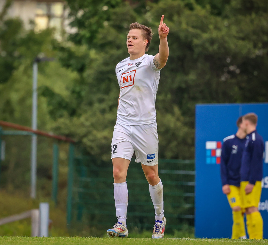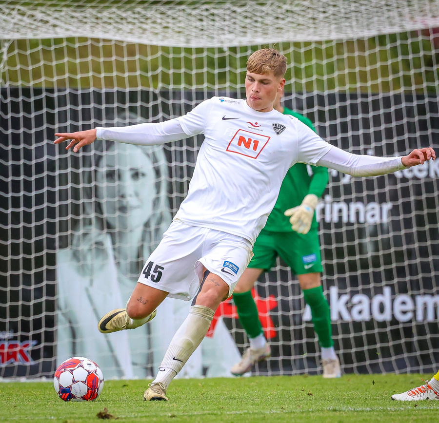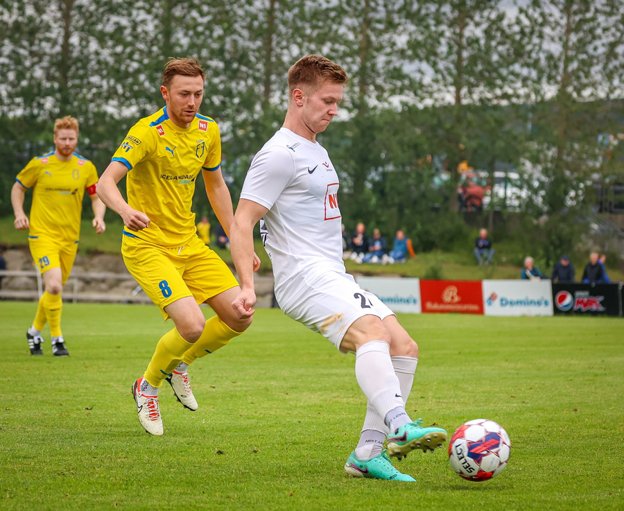 Máni Austmann kemur boltanum í markið, klárar stórkostlega, en flaggið fór á loft. Hann var rangstæður. Glæsilegt hvernig hann kláraði þetta engu að síður!