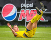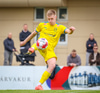 Sú spyrna er slök, svífur framhjá öllum pakkanum og útaf hinumegin.