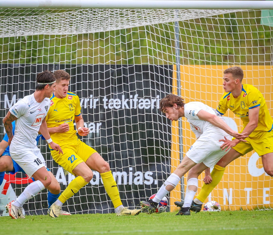 Oliver Heiðarsson með bestu tilraunina hér í upphafi þessa leiks. Fín sókn ÍBV endaði með fyrirgjöf sem Sverrir Páll Hjaltested átti og svo stangarskoti frá Oliver.