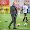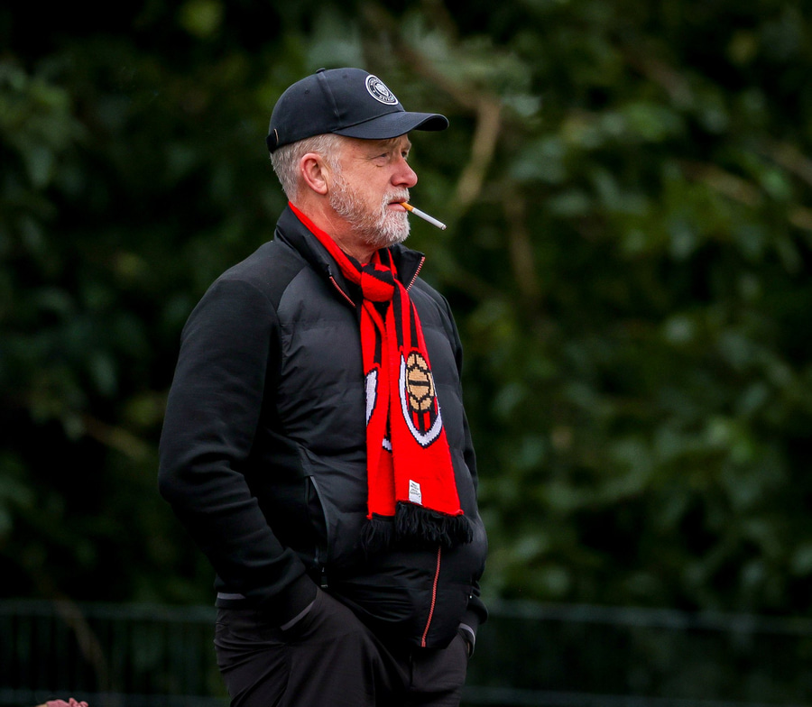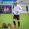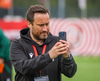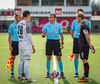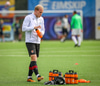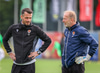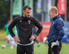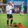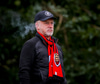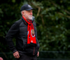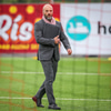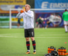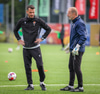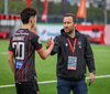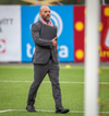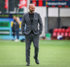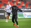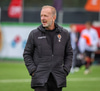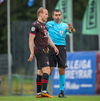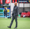 Arnar Gunnlaugsson, þjálfari Víkinga, að rífast við Eistana hér út við hliðarlínunni. Ég held alveg örugglega að hann sé ósáttur við hvað allt gengur hægt.