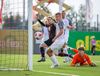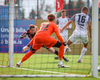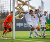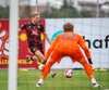 Mikill darraðadans eftir hornspyrnu Víkings. Markmaðurinn nær ekki að kýla hann í burtu. Leikmaður Flora reynir svo að negla boltanum í burtu en setur hann beint í samherja og þeir bjarga á línu. Þetta hefði verið mjög fyndið mark.