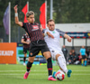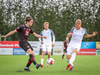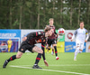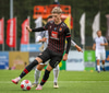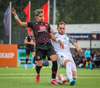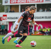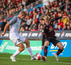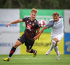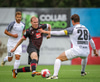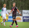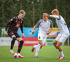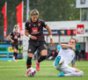 Víkingar reyna að spila sig í gegnum þröngt svæði en það gengur ekki. Flora nær að hreinsa.