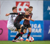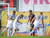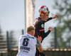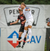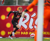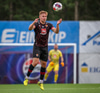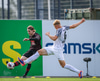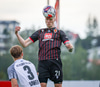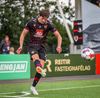 Danijel Dejan með flotta fyrirgjöf og Gísli Gotti hoppar hátt, en nær ekki miklum krafti í skallann.