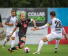 Flora í álitlegri sókn. Góður þríhyrningur og svo á Zenjov sendingu fyrir markið en Víkingar komast fyrir.