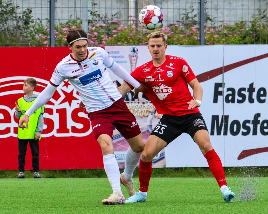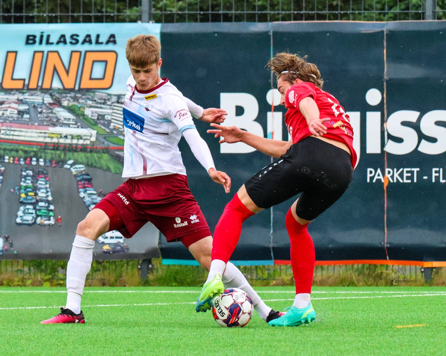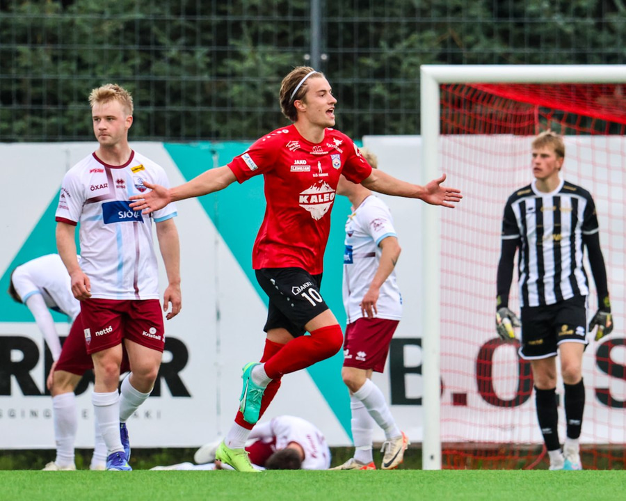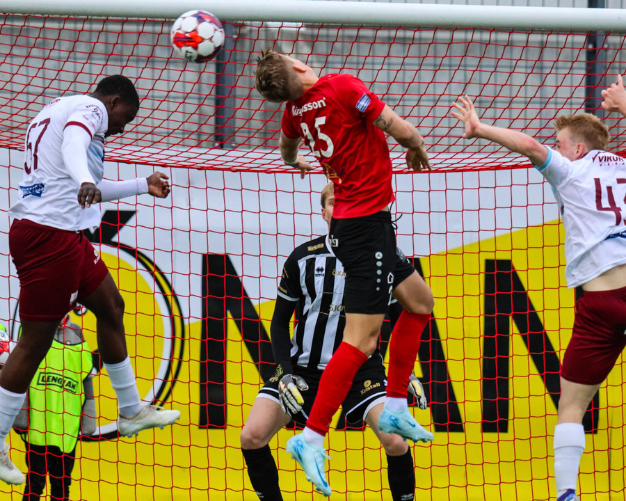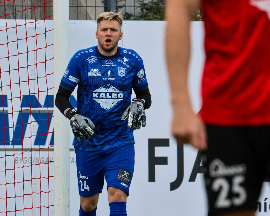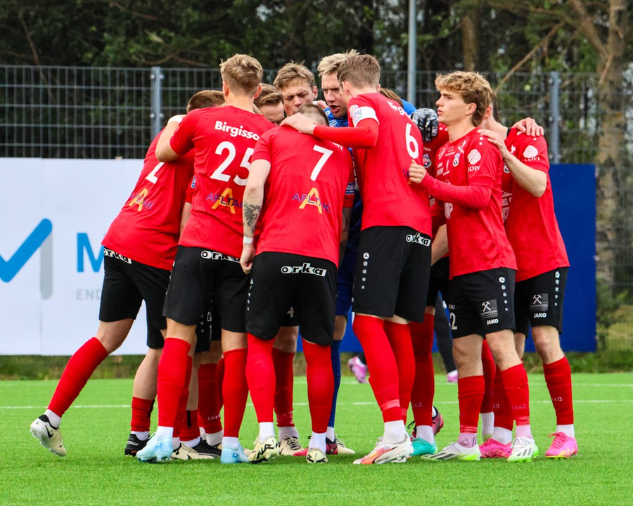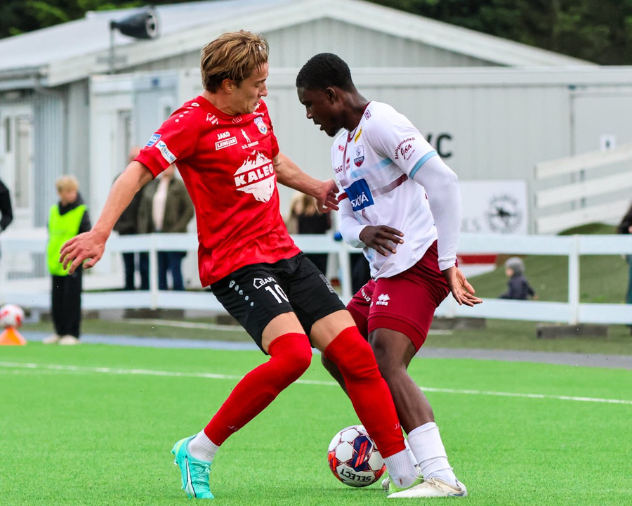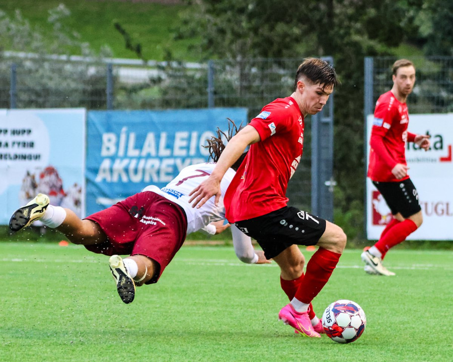 Oliver fær boltann inni á teignum og tekur sinn tíma. Hann sér opnun og nær skotinu á markið sem Viktor ver stórkostlega. Elmar er þá mættur á frákastið og nær að pota boltanum í netið.